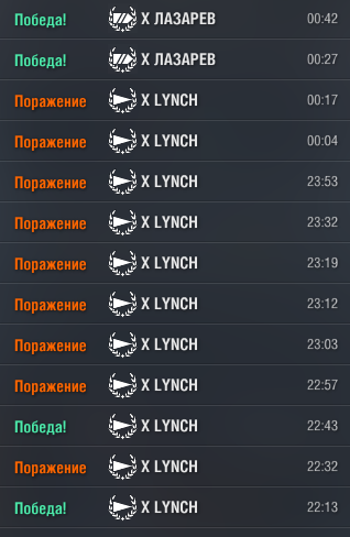 >>49801782 Вышел в два случайных боя - сначала турбослив за шесть минтут, потом турбопобеда за шесть минут. В обоих случаях не успел настрелять нормально, хз как в рандоме играть