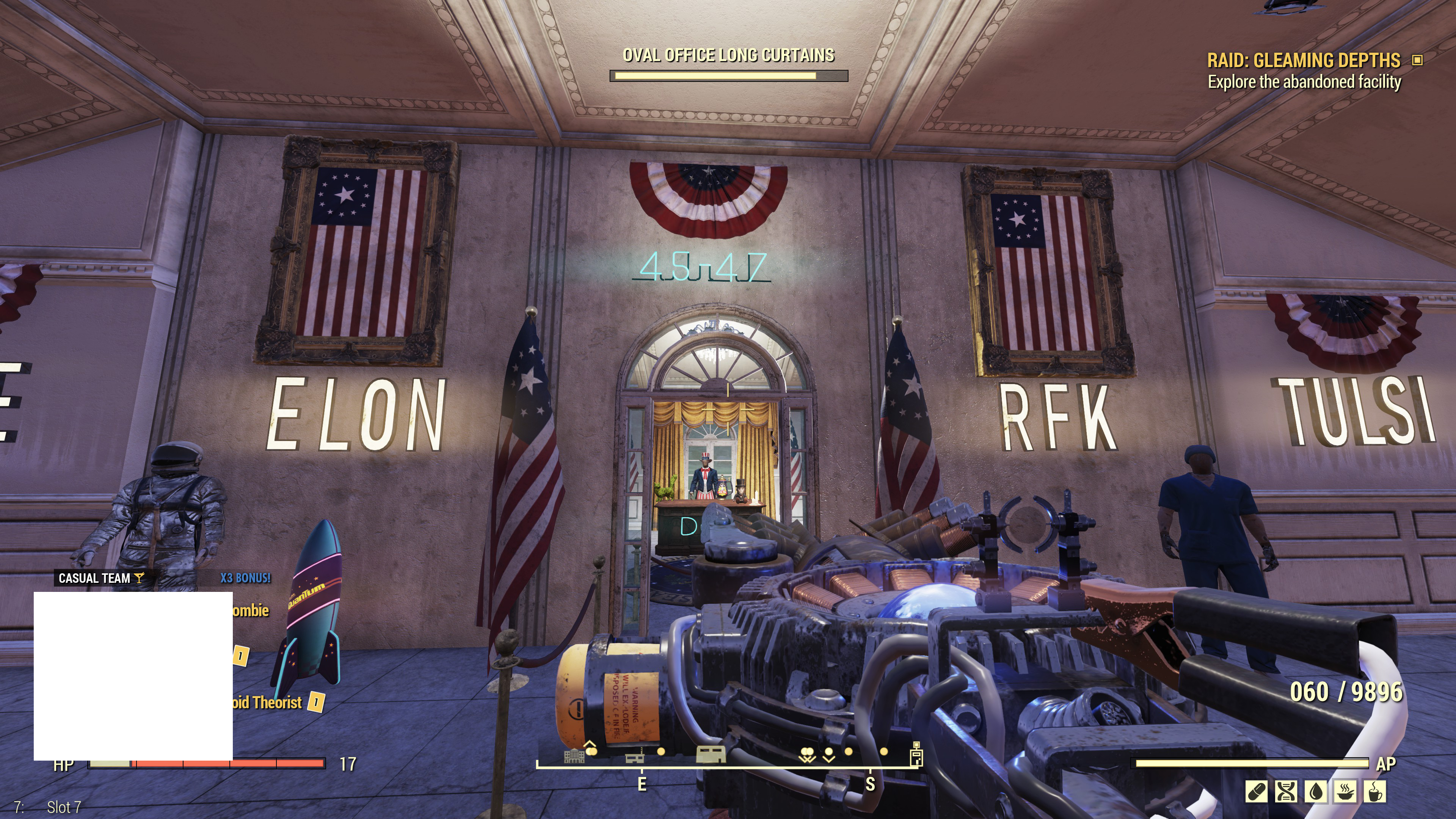 >>50174964 >фанат больших членов 3 Можешь сбегать в комбат зону, взять с собой Кейт и открыть кейс с криолятором в убежище 111. Все его игнорят, потому что экзотика, а это на самом деле турбо дилдак, который пидорит всё живое. Если его апнуть до кристаллического ствола (навыки не нужны), он превращается в какую-то нереально охуевшую снайперку в ВАТСе. В реалтайме придётся стрелять по дуге. Подводные: - нужно качать фаната больших членов и взрывника чтобы был охуевший урон. Также качать разброс от бедра, чтобы в реалтайме не сосать. - баг: убитые заморозкой враги потом респавнятся бессмертными и неподвижными мумиями, нужно ставить фикс. - стены в ватсе не пробивает, кристаллы застревают в стене. - патроны стоят как золотые унитазы, надо харизму до 16 или 10+виноградные ментаты, если хочешь закупаться ими.