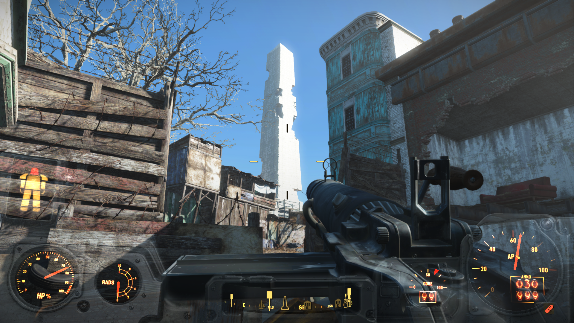 Будешь играть - убивай врагов с миниганами (они там же где в ваниле) и переделывай патрики в .38. Мили оружие с наибольшим уроном который всё ещё достаточно быстр чтобы опередить любую атаку врага это мачете. Ближайшее мочето лежит вниз по холму от дома Абернати, в камнях на чумодане. Делай квест Грейгардена как можно быстрее, через пару дней роботы пришлют тебе на почтовый ящик водный чип. Иначе тебе придётся развиваться до 7 уровня поселения, чтобы просто получить чистую воду, а это пиздец межгалактический магнатище.