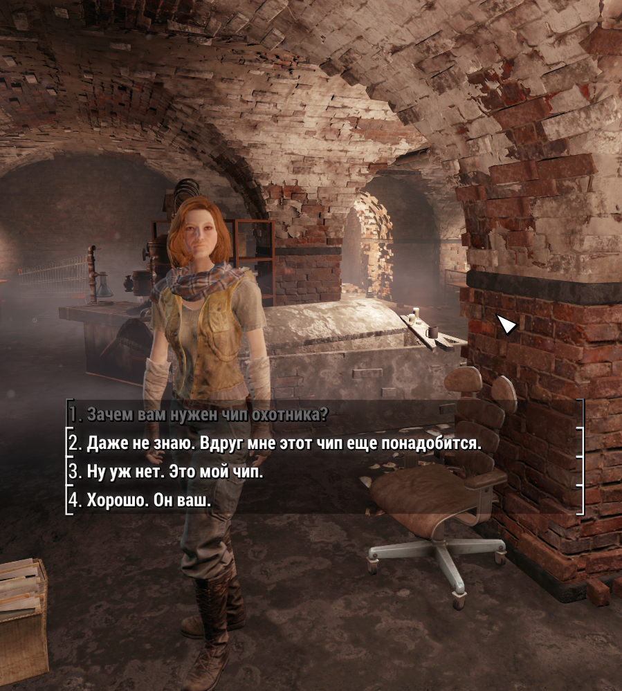 Кстати о тоддокале. Пикрил пизда требует чип охотника. На вопросы зачем и почему верещит ЯСКОЗАЛА, НАМ ПОТРИБНО. В любой нормальной РПГ писатели бы удосужились выдавить хотя бы пару предложений, чтобы обосновать передачу ценного артефакта. Но только не в копрочетвёрке.