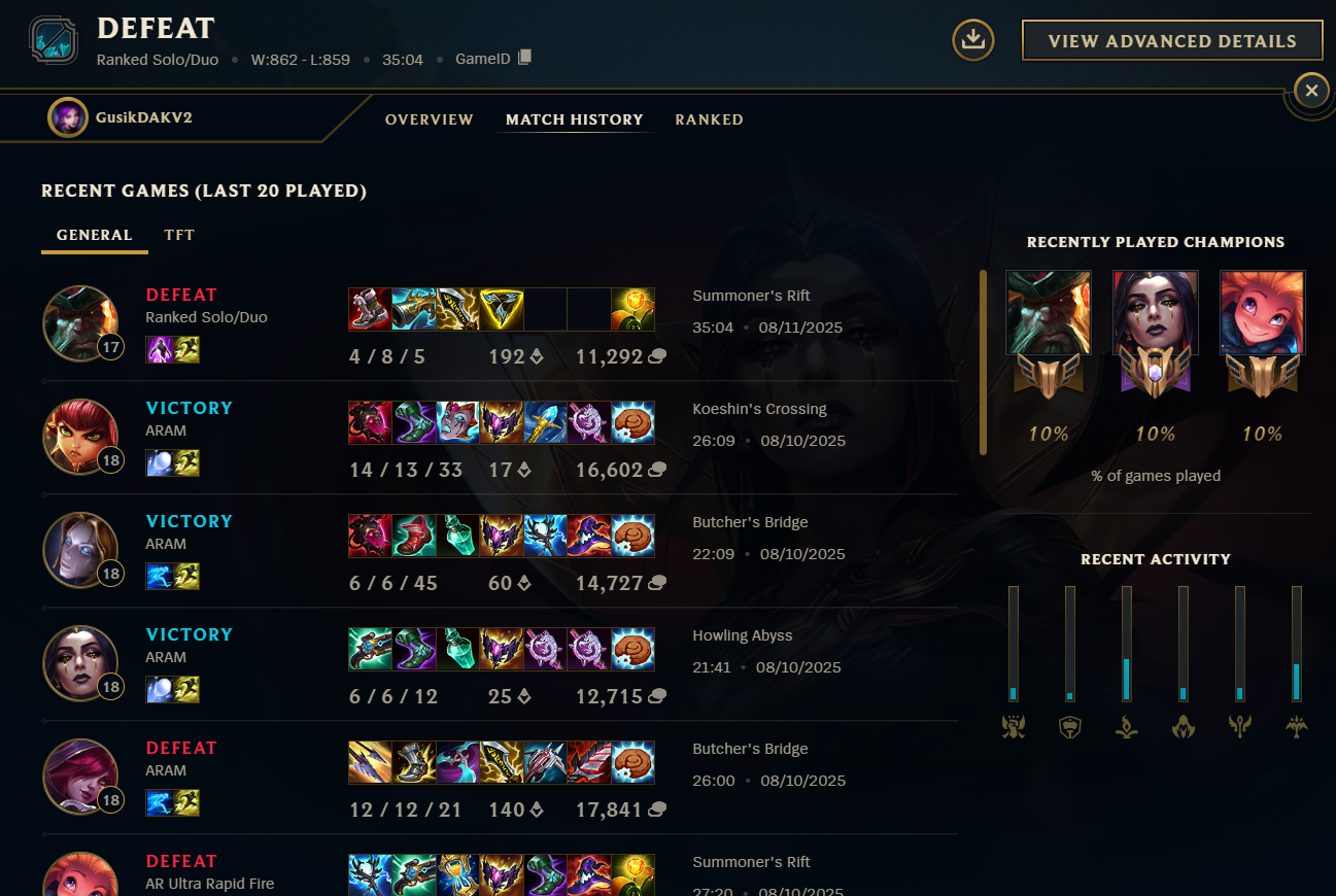 Моя стата ща, где-то на 20 лузов, 4 победы.