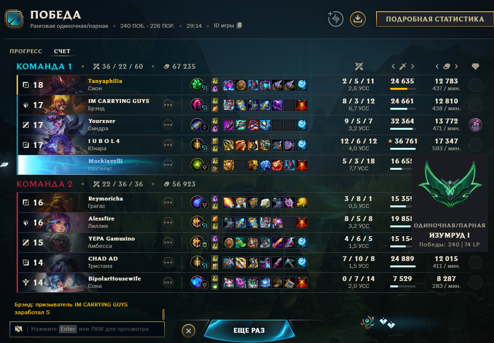 опять протащили. я вроде бы не хочу руинить игру тиммейту что тащит катку но я не хочу выигрывать игры со счетом 8 9. что делать в такой ситуации?