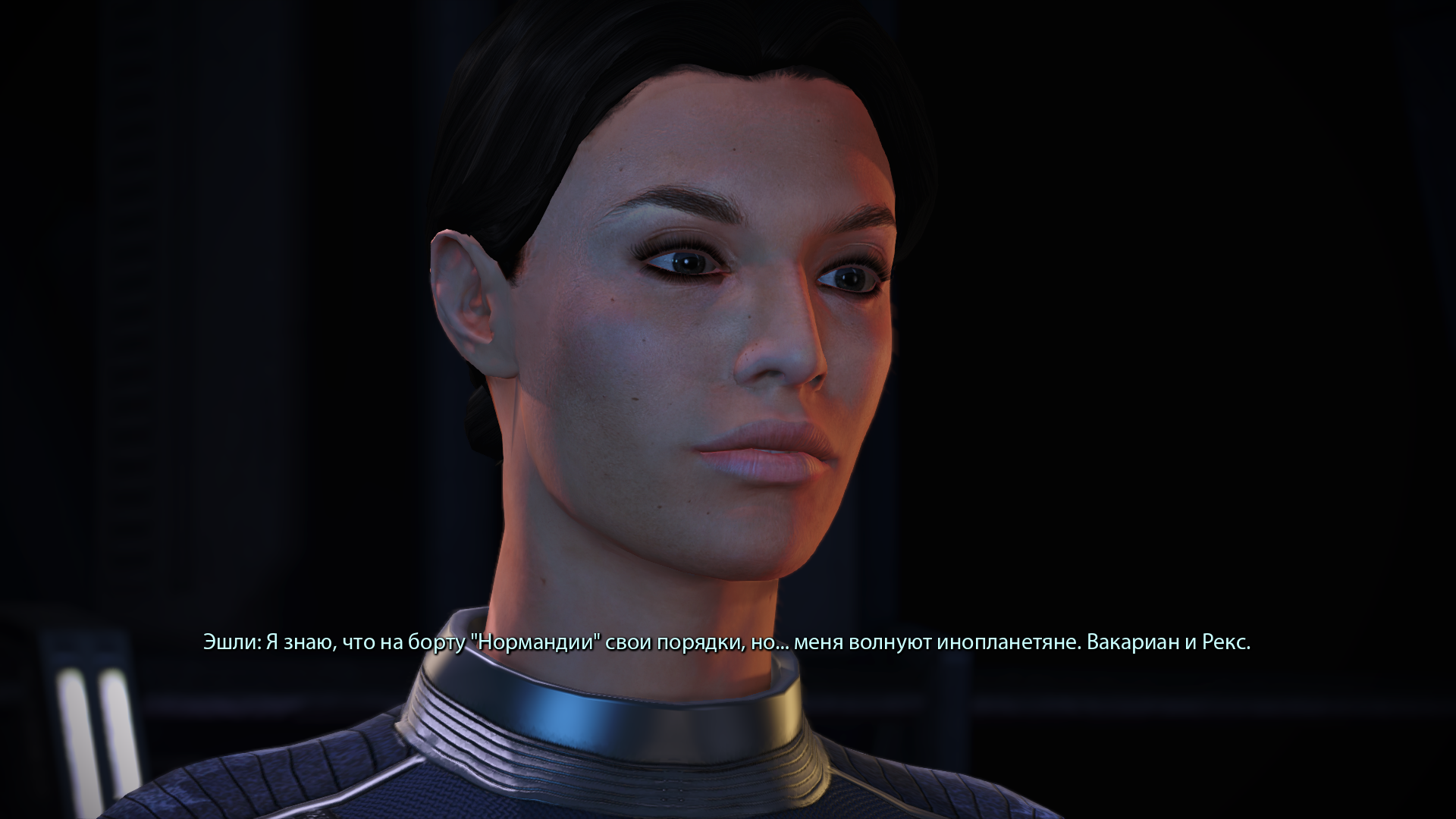Забавно, что у Эшли бомбит от того, что по Нормандии свободно ходят Гаррус и Рекс, а про Тали она молчит, хотя именно тали всё время тусила у ядра, распрашивала главного инженера на корабле и в итоге спиздила эксперементальную стелс-систему людей и турианцев к себе на флот.