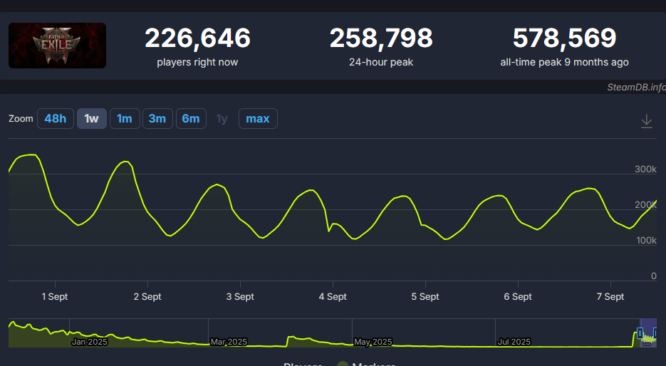 хотел было посмеяться что у пое2 упал онлайн на 50к а потом вспомнил что 230к человек для уебищной пое1 это вообще пиковый онлайн хуй знает когда и через 2 недели обычно в районе 60к болтается давайте просто закроем эту дрисню1 для 2.5 калек