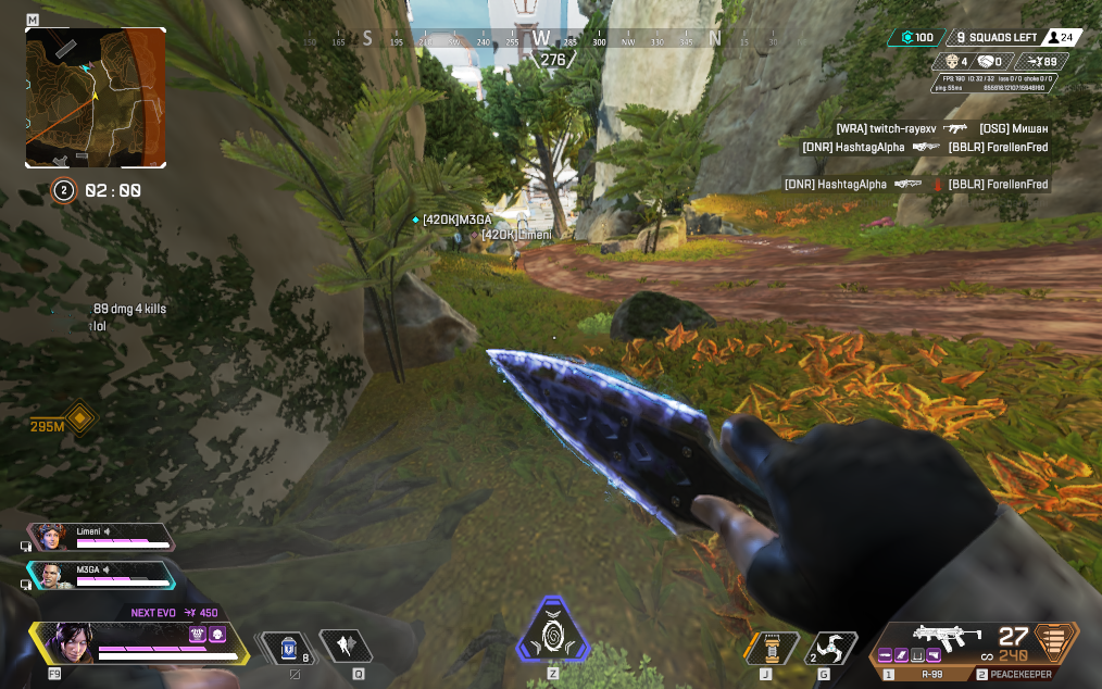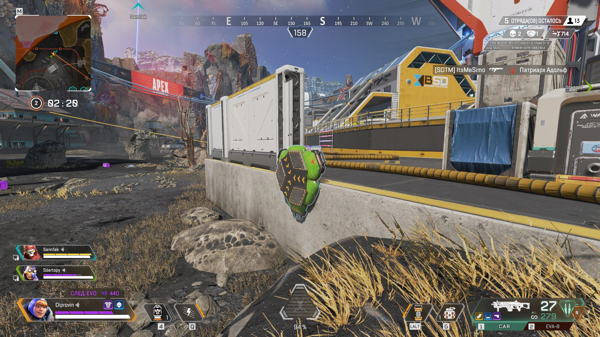 Немного на отвлечённую тему: Я начал Вантагу мейнить. Пиздец сильный перс. Сканер врагов на карте, сканер следующей зоны, ульта Бладхаунда в прицеле, бесплатный краббер всегда в кармане и не самая быстрая, но возможность далеко съебать с поля боя. После хорзы, которую несколько лет мейнил, это выглядит пиздец как читерский персонаж.