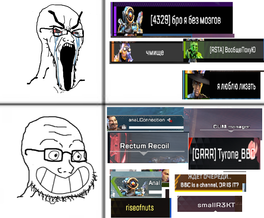 А еще откровением для меня было, что опыт других игр помогает быть успешным в других играх. Мб это и очевидная хуйня, но я вот когда пришел в Апекс - у меня не было опыта БР игр. У меня был опыт шутеров типа cstrike, overwatch (ну и опять же.. в КС там не более 1000 часов было, в овервотче тож примерно также)и еще вяские соло-шутаны.. но этого было не так много. И я сосал по началу знатно в апехе. А всякие челики, которые постоянно в шутаны катали (фортнайты, PUBg и прочее) - они быстрее адаптировались