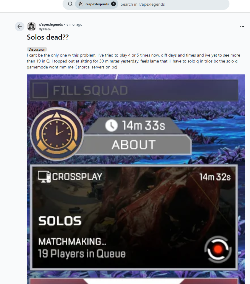 Если кто то хочет прокачать свои нервы или расхуярить их то я думаю щас самое время залетать в апекс соло. Будете пиздиться с фулл стаком твич предов друзьяшек с рандомами из первой голды может в веселую нарезку на ютубе попадете