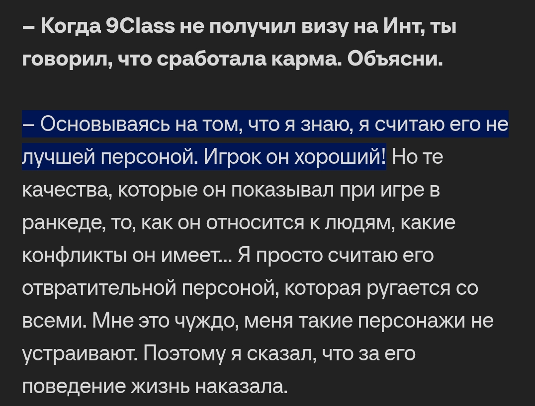 за всеми эмоциями от игры никто не обратил внимание на хитрую махинацию по прогреву гоев, которую провернул никс. раскачал эмоционально аудиторию на хейт к скитеру и веру в аме и ххс, упомянул что залутал 800к на ставках (типа верьте мне, мои ставки заходят). в финале, когда было очевидно, что китайцы проебали в нулину драфт, заявляет, что ставит все на них (как будто для него 800к не копейки), провоцируя аудиторию ставить на очевидный въеб. закономерный итог - китайцы въебали, никс залутал миллиард с въебанных денег своих зрителей, перешедших по его ссылке. думайте