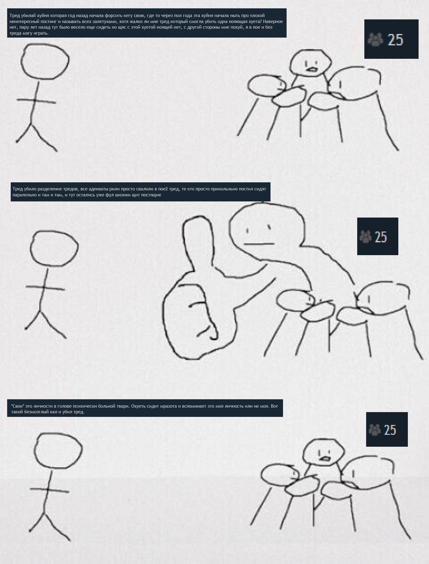 Тред убило разделение тредов, все адекваты рили просто свалили в пое2 тред, те кто просто прикольльно постил сидят паралельно и там и там, и тут остались уже фул шизики щит постящие