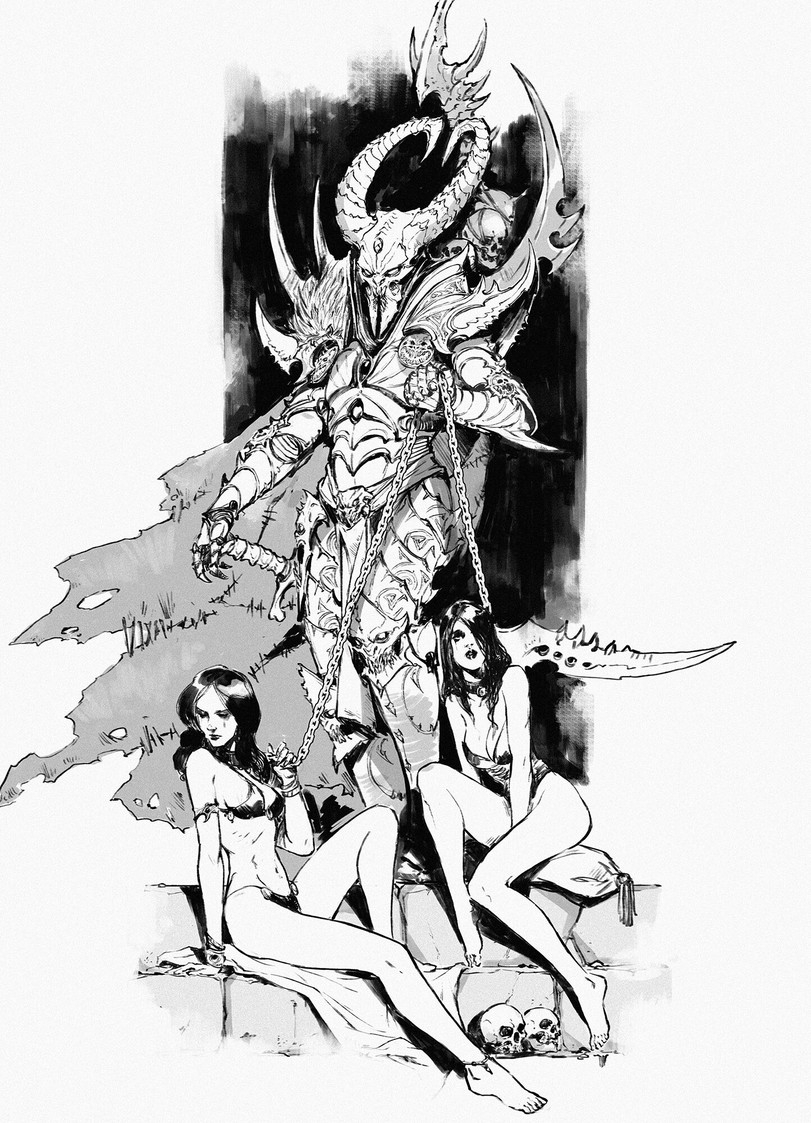 Около эльдарской заставы на Янусе, не доезжая 100 метров, останавливается скиммер друкхакри - Шестисотый Веном с тонированными стеклами. Эльдарский воин-экходит, интересуясь в чем дело, подходит к летающей машине и стучит в стекло. Стекло опускается и там сидит Маражай у которого между ног вольная торговка делает ему минет. Экзодит-воин спросил: "Что это у тебя?" Маражай: "Да вот, мартышка минет мне делает. Ударишь ей по голове, она делает быстрее, - демонстративно отвешивает РТ оплеуху и та начинает быстрее сосать, - еще раз ударишь, то еще быстрее. Хочешь попробовать?" Экзодит-воин: "Да ну, ты мне всю голову отобьешь..."