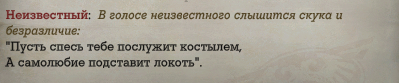 >так и не сказали шо за голос был у гг в голове в первом акте и куда он потом пропал. Потому что это контент Еретика. Смысл голосу пытаться мыть мозг уже промытому догме или зашкварному дурачку схизматику?