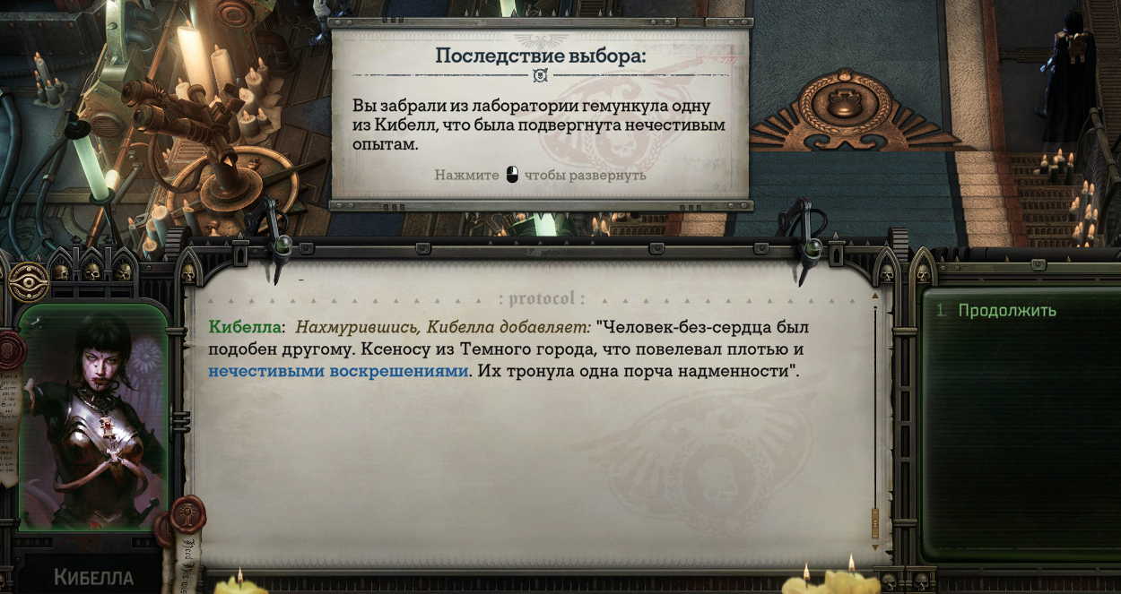 Котики, приближаюсь к концу первого прохождения, догмашиз-офицер. Второе хочу за ересь-псайкер с баба-гг. С кем роман мутить, кто не сбежит в 4 главе? Я уже наслышан про этот спойлер, ага.