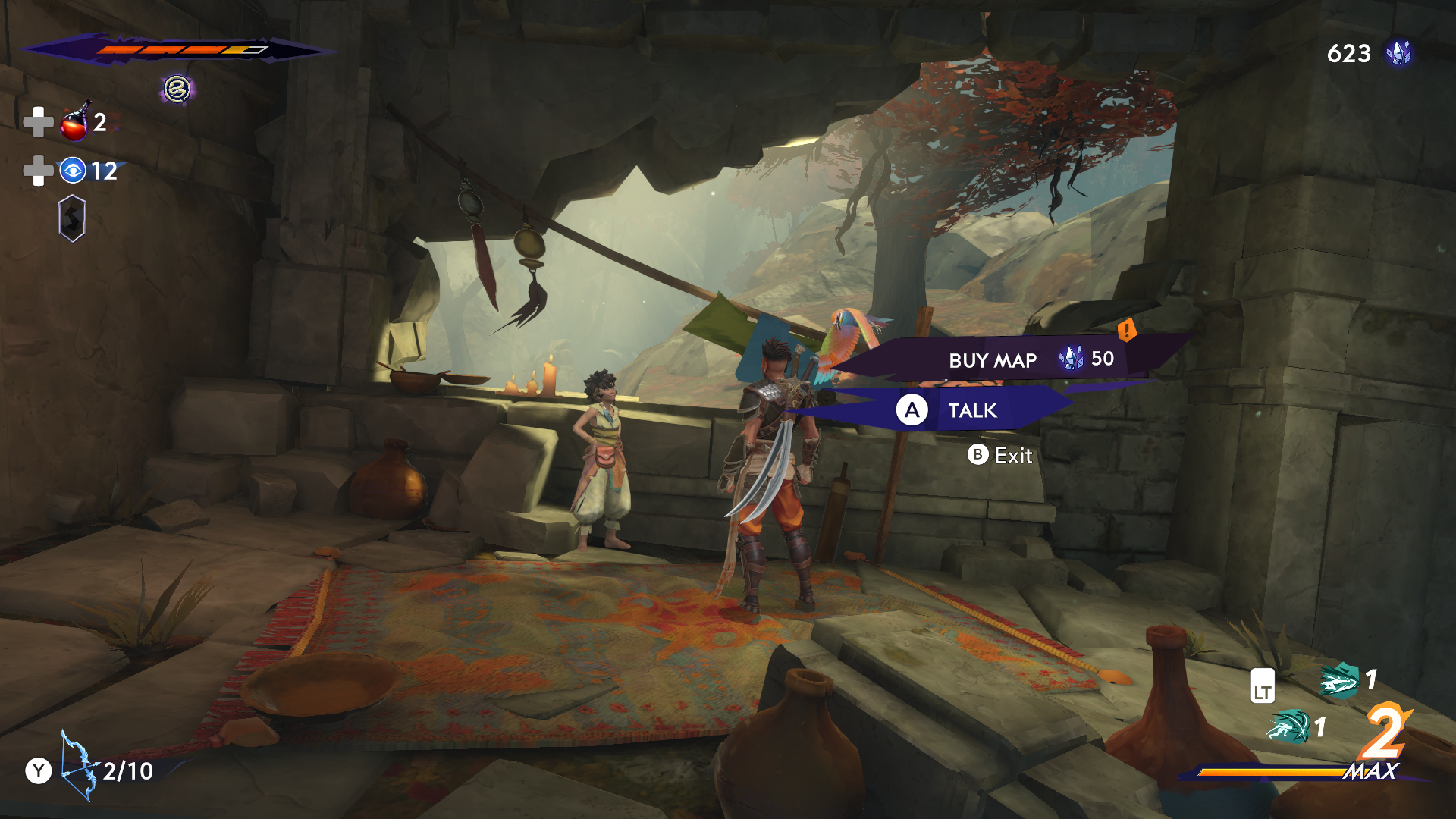 путь охотника самая верхняя комНата прыгай влево через кусты. покупаешь амуль.