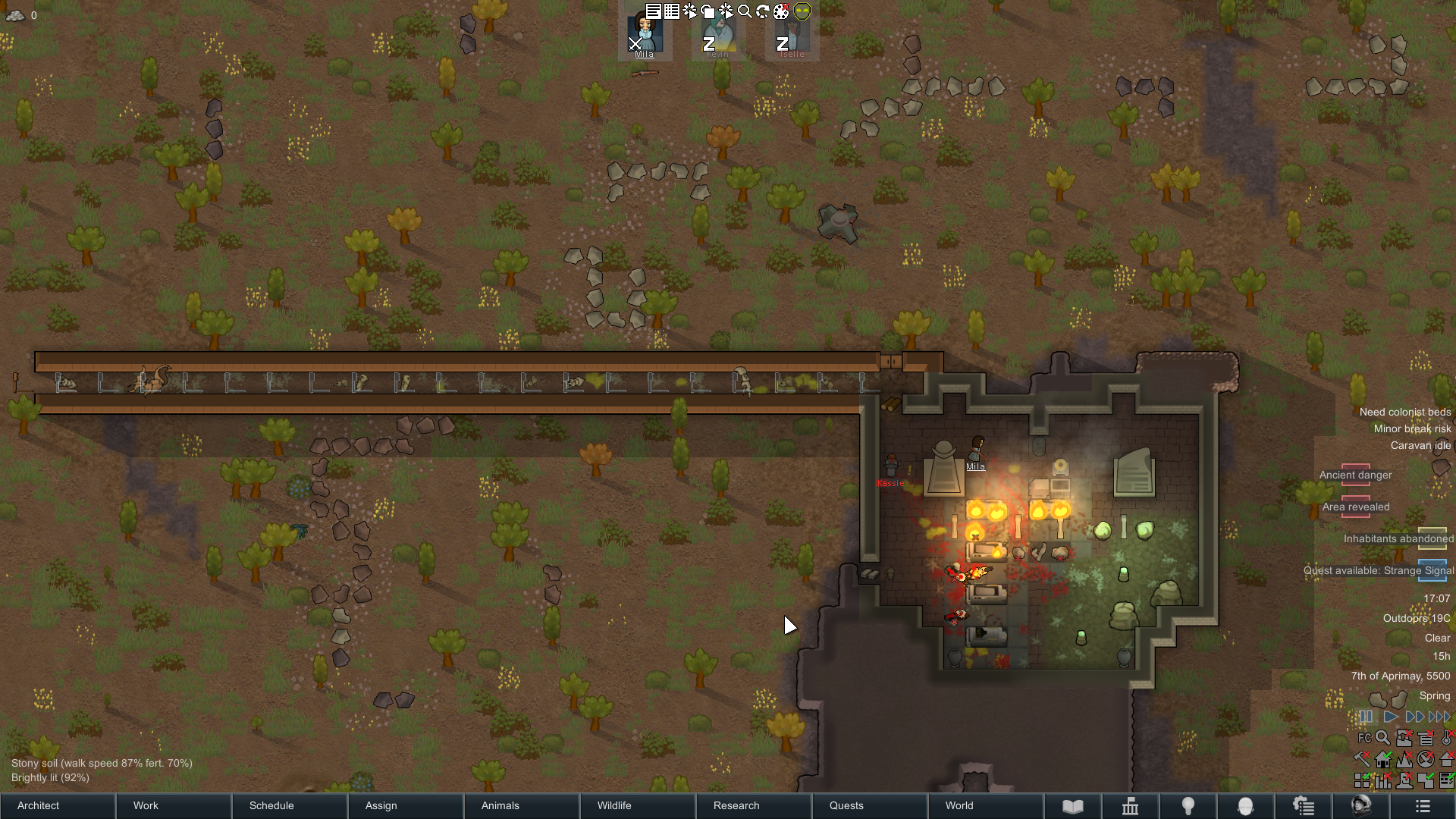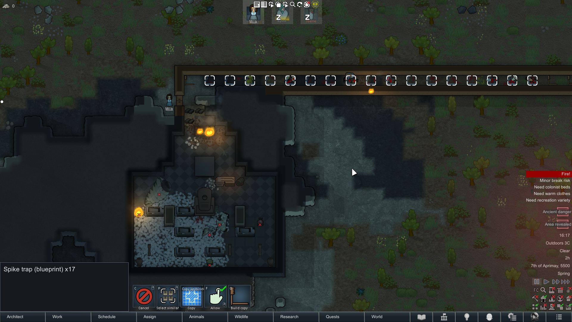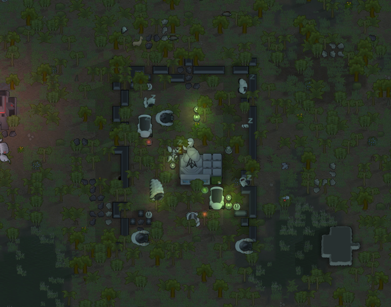 >>50243157 Плантации пиздос. Никакой меты. Батареи любят делать бзз, так что если играешь с батареями(не обязательно), лучше бы их разнести стенками, чтобы не сгорели. Минометная батарея - мое почтение. Солярки где-то в ебенях. Прямо ждут, чтобы туда кластер приземлился и вынес тебе энергетику. Комнаты оче плохие. Мало дверей, узкие коридоры(коридоры лучше вообще не делать) Всякие хуйни по центу, чтобы пешка лишние зигзази выписывала. Холодильник на другом конце карты от полей. Диспенсер не соединен с тюрячкой. Нету освещения на складах и в жилом отсеке. А это скорость перемещения. Спальные комнаты вообще пиздец во всех смыслах. Склады зачем-то разнесены, но хоть не в ебенях от мастерской и то хорошо. Очень плохая база короче. Тройка с минусом максимум.