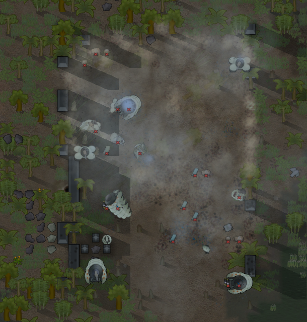 Ах да всё это ещё можно тупо расстрелять из дыма, так как скрипт на атаку у мехов с маленьким радиусом и в СЕ кластеры просто расстреливаются не снимая свитер.
