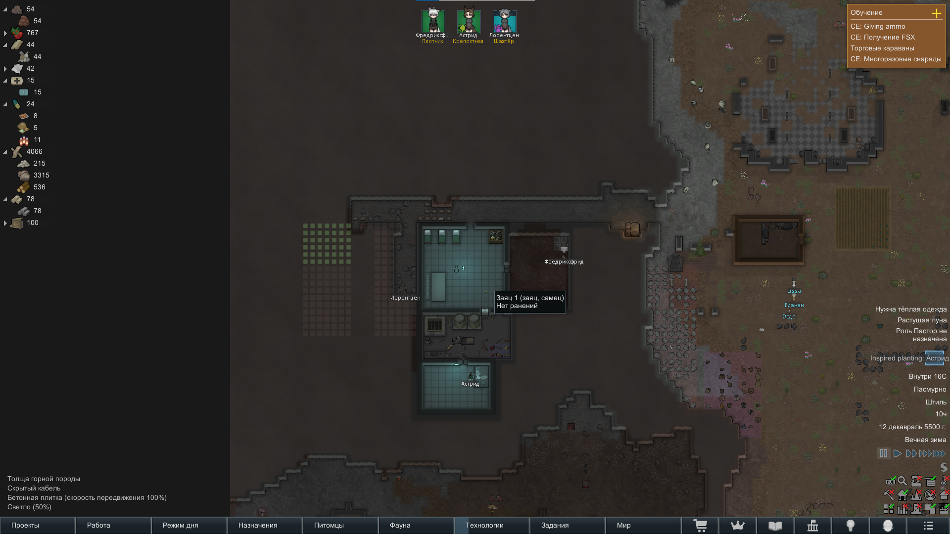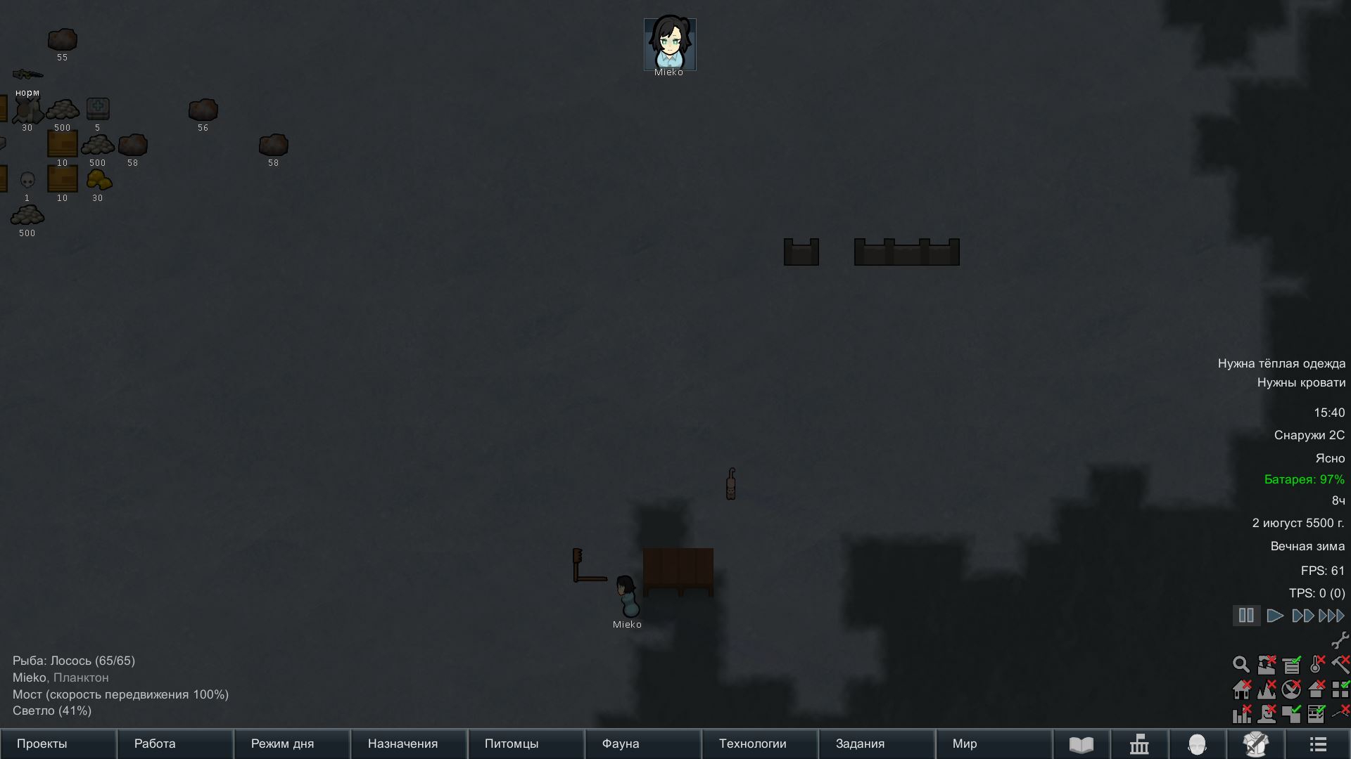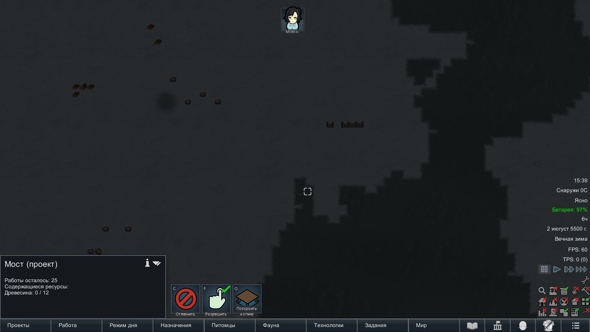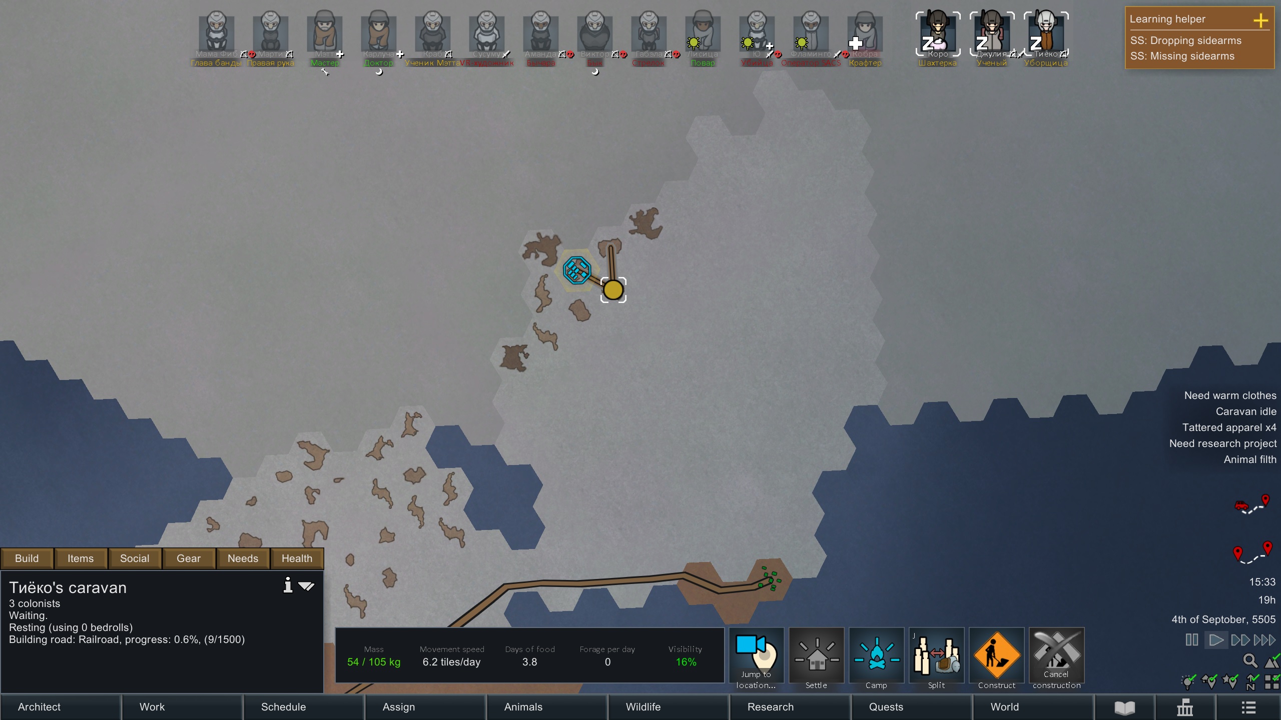 Задолбался с этими поездами. Сначала долго не мог допетрить, как построить рельсы на леднике в горах. Колонисты что-то строили-строили 2 дня, а потом ничего не появлялось. Поставил мод Rails and Roads of the Rim - он не дает строить туннели на айс щите. Кайф. Поменял в конфиге холодных биомов allowRoads на true у айс щита и ура, рельсы появились. Наконец-то дали собрать караван с поездом, но при отправлении писало что-то вроде Exit area is blocked (SE) (S) (N) ... (your mom) куда бы ни ставил Обидно, потому что "область выхода" на 1 пикче прямо перед носом. Идеальное место для станции, защищенное горой. Я уже и место раскопал. Ну ладно, перенес поезд на открытое пространство. Все равно не едет, сучара. Пришлось раскочегаривать дев мод, пробовать разные варианты. Допетрил, что ему надо нарисовать дорогу через мод Vehicles, тогда он более-менее раскукоживается. Но с дверьми подружить не получилось. Поставил это чудо в ангарчик без крыши возле базы, для поездки надо разобрать 3 клетки стены, чтобы оно могло протиснуться. Рельсы на локальной карте ему не нужны, только для красоты. Проложу потом, когда допетрю как спрятать поезд под землю и чтобы оно еще путь находило. В итоге смог сделать тестовый заезд в соседний тайл, но и там оказался нюансик: почему-то оно крашится при попытке сделать Camp, не выходя из поезда. Благо его можно бросить на карте и зайти просто колонистами - тогда норм.