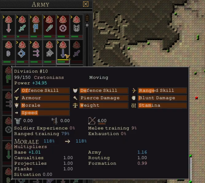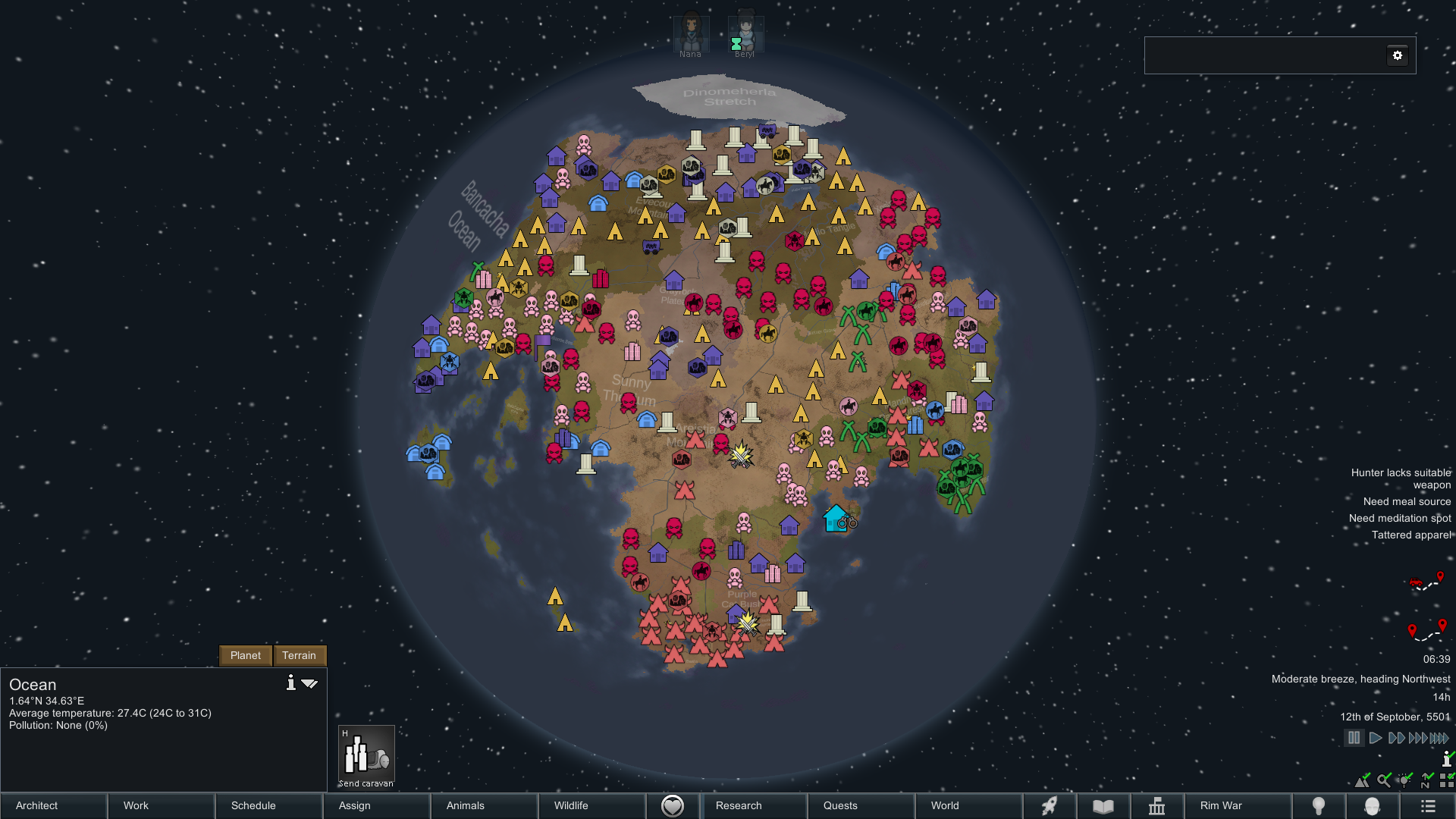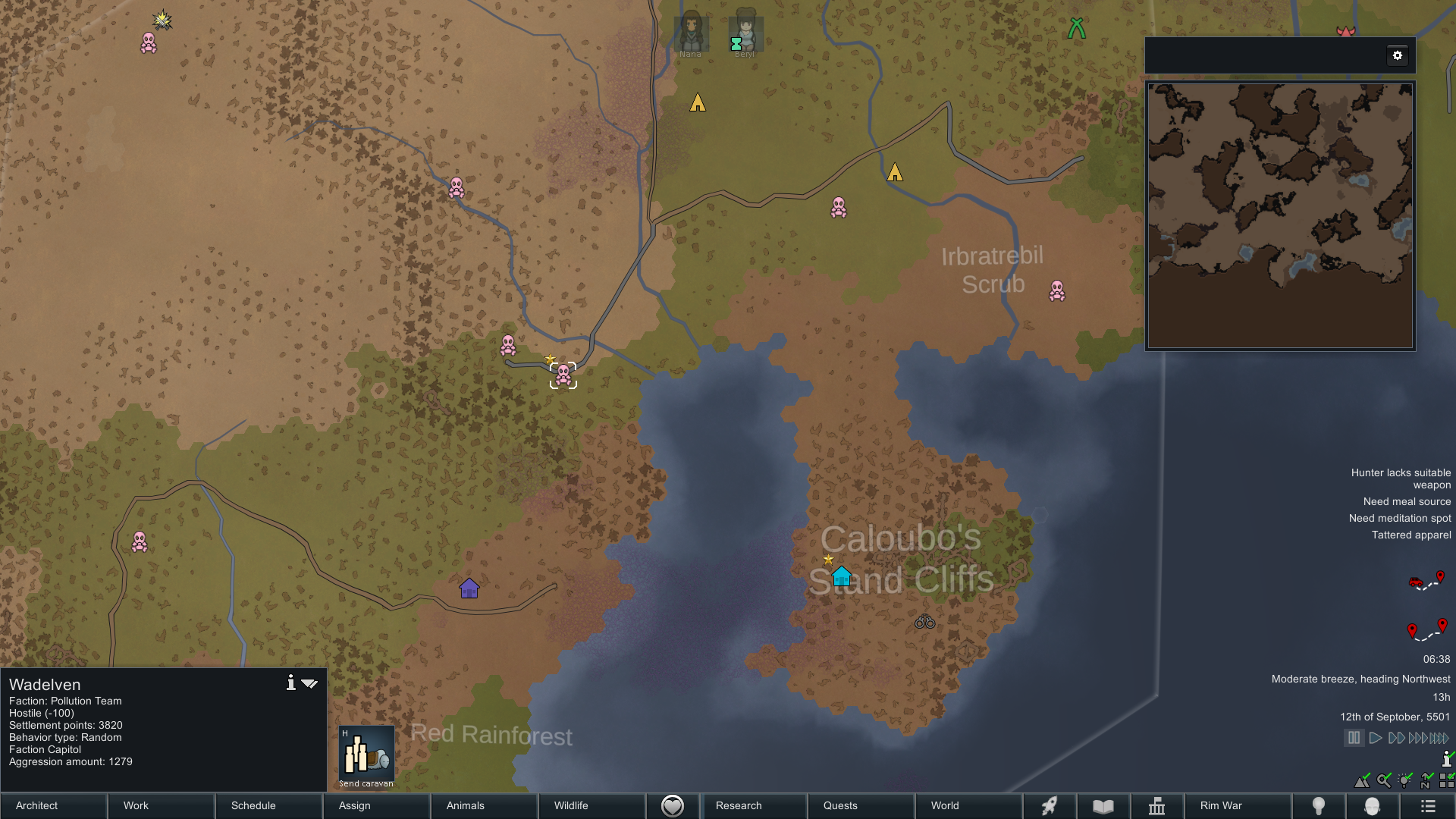 Побродил по Дальним Землям и Берегу Грозового Ущелья. Хотел дойти до Запретного Острова, но чота как-то там куча разных бандитских фракций. И Разбойники, и Луговые собачкипираты, Чёрный пёс, какие-то сраные культисты. Вот вроде все слабенькие (относительно моего отряда), но их много, и они так и норовят покоцать не людишек, а скотину. Быки и собаки без брони, и в них с пары ударов лапы в минус, соответственно скорость всего отряда падает; а без быков я в такую даль не попрусь, обратно ж надо будет лут тащить.