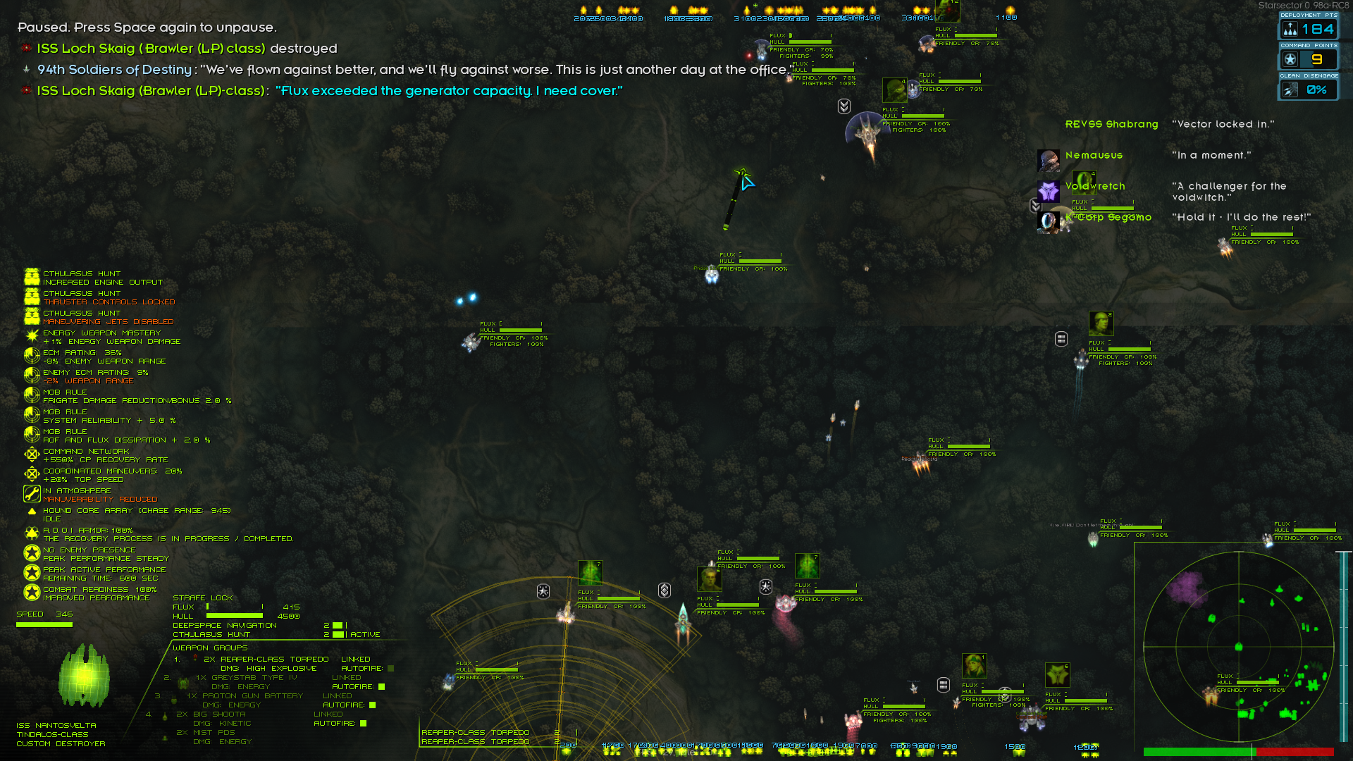 Пейратов я таки перерос в любых массштабах, даже если их в три-четыре раза больше с топовыми пилотами, элитными кораблями и без Д-модов. Даже рукастый Натиск уже не стращает. Нужно снова окунуться в ИИ-приключения вне Ядра. Благо задания подкидывают подходящие - вот это например, далеко не самая серьёзная цель. Были бы у Стражей Альфа ядра и не было бы S-модов - другое дело. Но и так довольно серьёзная задача.