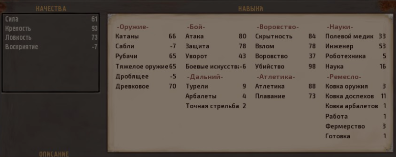 >>50242615 >Кенши вот не будем обсуждать Попрошу не говорить за других! Я тут новое прохождение начал за однорукую рыжую няшу. Сначала думал делать гражданку Империи, охотницу за головами и сокровищами, готовую влезать в самые заражённые места на континенте, нигде не находящую себе дом. Все добытые научные штуки - продавать. Базу не создавать, недвижимость не покупать. Напарников больше одного не брать. Если на ком-то награда - тут же его сдавать. Если есть возможность - продавать поверженных дурачков в рабство. Не воровать в городах. Качать боевые искусства, оружием не пользоваться. Для начала я двинулся к Грузу. План был - ковырять медные залежи неподалёку от городских ворот и натравливать всё, что ведёт себя агрессивно (или потенциально может) на стражу. Уже на второй день я заработал на неплохую руку производства роев, но в продаже была ещё "твёрдая" рука мастерского качества. Я подумал, что стоит тут задержаться подольше, купить другую руку и только после этого пойти качать боевые. Был прикольный случай, когда подрались между собой два крупных отряда песчаных ниндзя и мятежных фермеров. Их пришёл разнимать мимо проходивший имперский патруль, в результате чего на многих телах висела награда по 500 катов. Я было подумал, что ради такой маленькой награды лишний раз дёргаться не стоит, однако они вставали, лечили друг друга и дрались с самураями, и награда позрастала. Вот таких уже можно смело таскать в тюрьму. Глава полиции куда-то съебался, так что пришлось просто сажать в клетки, получая только деньги, но не репутацию. В ментовке вскоре стало слишком тесно, и последних буянов пришлось тащить в рабский магазин в центре города. В результате денег у меня стало сильно больше, чем нужно на покупку нужной руки. Оставалось только дождаться её появления в магазине. Но на следующий день произошло неожиданное. Я увидел, что аватарка покраснела, но ни бандитов, ни рвачей на горизонте не было. Зато вдалеке стояла какая-то благородная сволочь в павлиньем наряде и пуляла в меня из арбалета. Сдуру я рванул в город, но на меня набросились охранники и арестовали "за нападение". Посидел немного в тюрьме, промотал срок, но выпускать никто не явился - главный полицай куда-то съебался. Тогда рыжуля кое-как взломала замок, быстренько заскочила в магаз за "рукой скелета" специального качества (ну спасибо, что хоть такая была) и отправилась за новой жизнью, новой славой. Было решено обучиться боевым искусствам и когда-нибудь вернуться, чтобы навалять этому зарвавшемуся кретину. Для тренировок обязательно нужен напарник, чтобы мог спасти в случае чего. В роли такового был выбран Чад, у него и причёска стильная, и пыльник что надо. Они с няшей сразу оценили причёски друг друга и отправились в пограничную зону - махаться с пыльными бандитами. По дороге купили у оседлых кочевников щенка гарру, назвали его Злюка. Будет ходячий склад. Продолжение следует...
