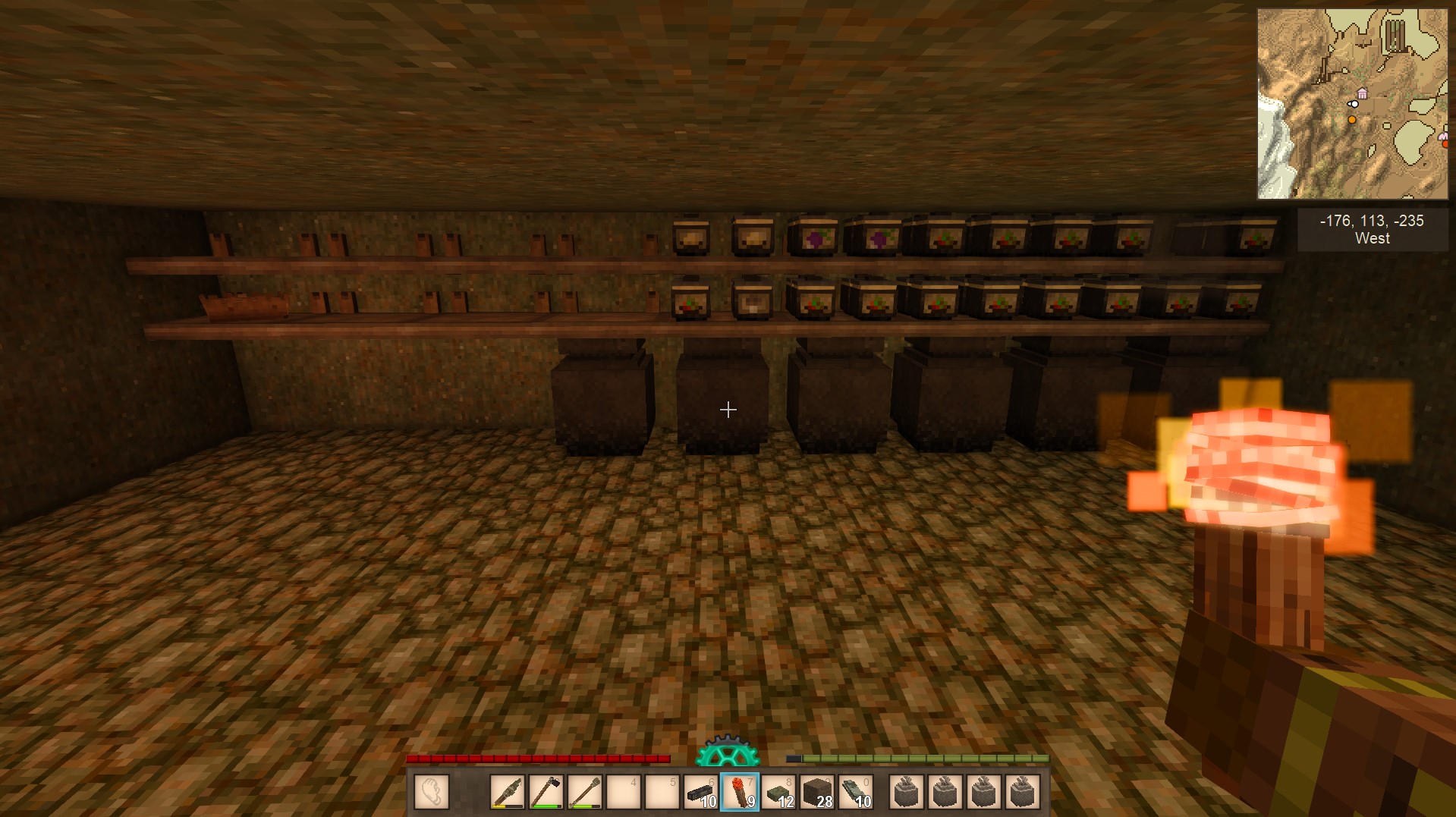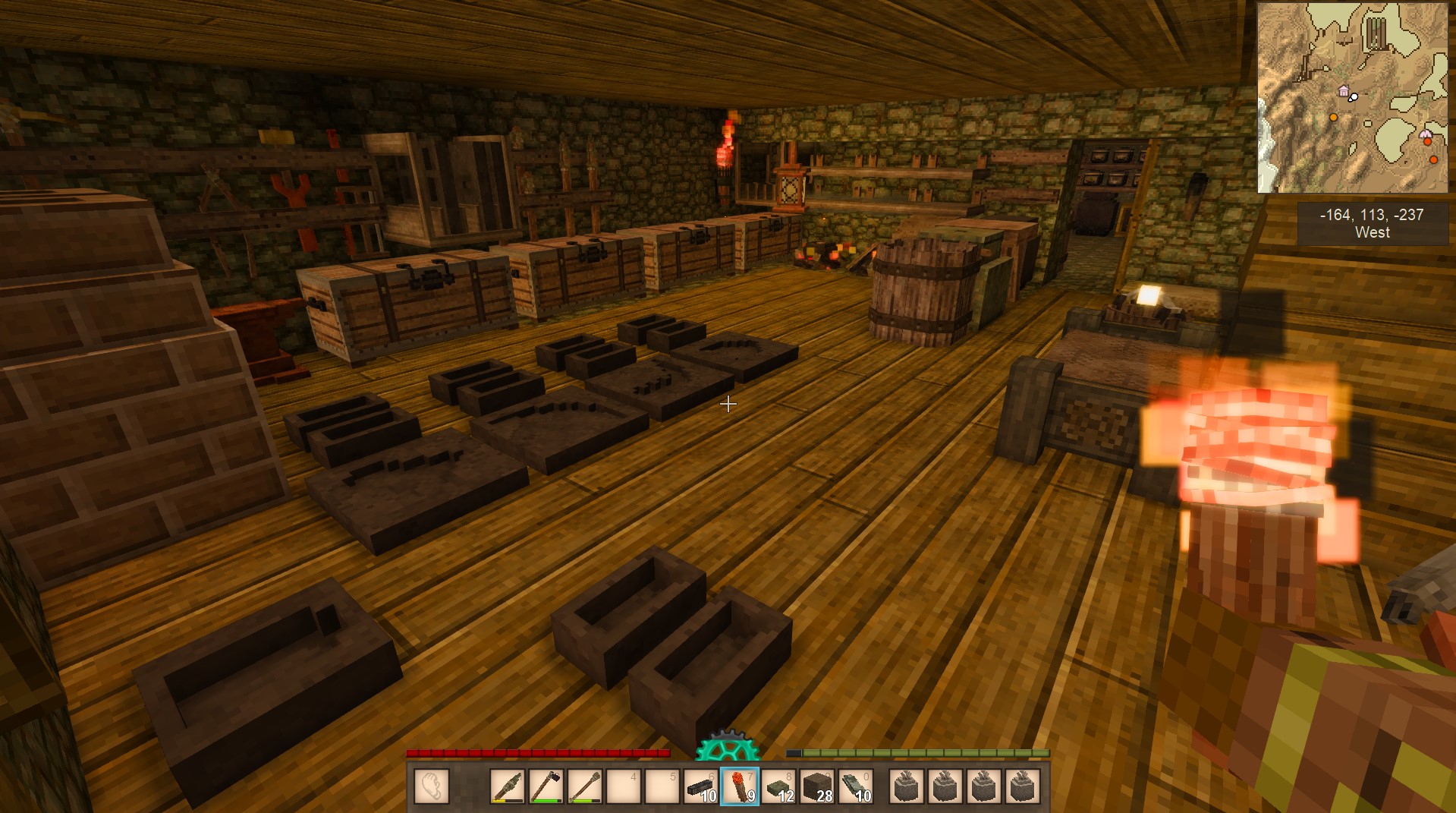 От винтажки прям кайфую всю неделю. Середина ноября, уже выпал снег, кладовая не битком, но норм, с голода не помру. Есть всё, кроме молочки, животными пока не занимался, слишком много всего делать приходится одному. Зато пасеку в теплице сделал. Потом расширю и посажу туда морковку с репой, благо стекла хватает. Пока делаем медные слитки и инструменты впрок.