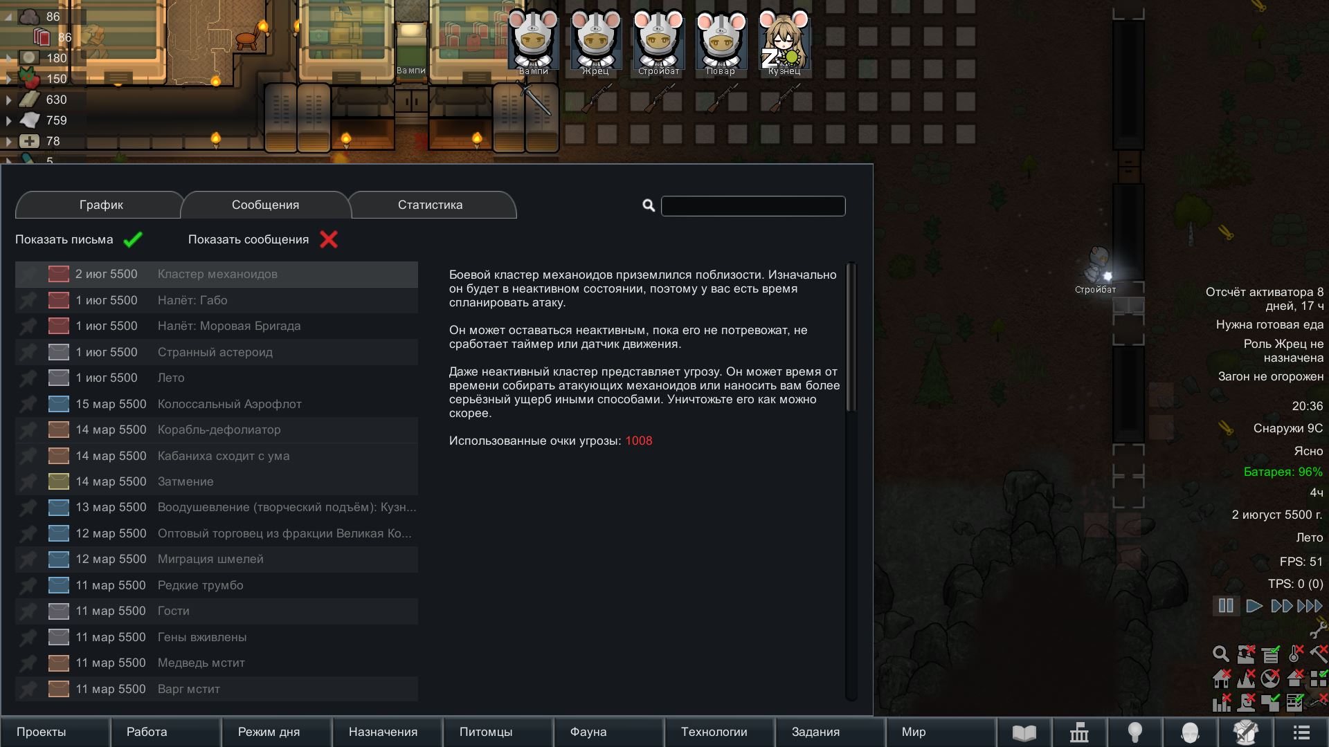 >>50245991 они жрут из ближайшей кормушки, им не важно - тарелка для животных или бочка для еды на кухне. я когда строю базы, то ставлю кухню/столовую в центре базы, а внутри здания ставлю по максимуму столов со стульями, чтоб эти опёздалы кто без работы тусили на кухне и сразу же тут же брали еду. а не таскались к животным