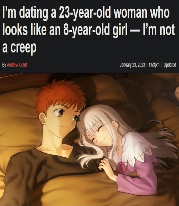 Нормальный чел до тридцати пяти ебет одногодок, потом по смещению -15. Все что ниже - жидоболезни от векового близкородственного скрещивания и воспитания в условиях фемдомного матриархата. Такие дела.