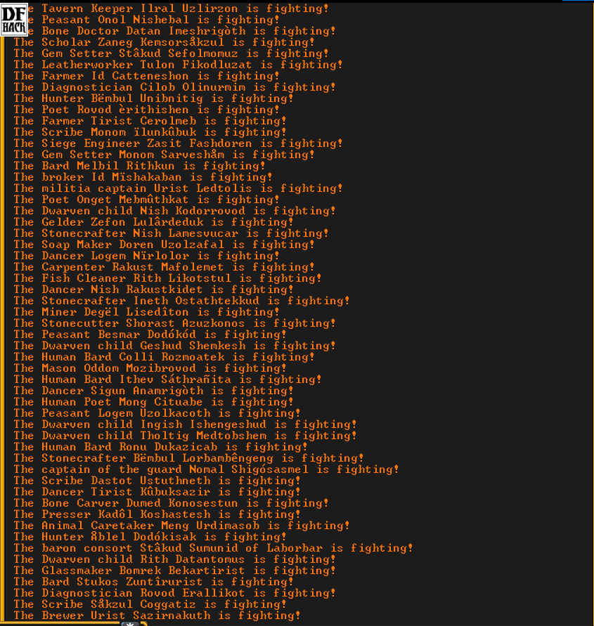 Походу единственной и самой страшной угрозой в режиме крепости являются оборотни. Когда я ставил возраст мира до 100 лет - проблем с ними не было. Их самих просто не было. Но когда я дал дожить миру до 200 лет понеслось... Каждый год, дважды в год, эти выродки приходят и трансформируются где-то в таверне, после чего от 2 до 6 укушенных на каждого оборотня доставляются в лазарет, где я провожу мостовой абсолютный экстерминантус, а потом оказывается, что оборотень куснул ещё и мимокроков, которые не пошли ни в лазарет, ни просто сьебались из моей крепости, а целый месяц сидит в моей таверне, а потом сам превращается в ебучего оборотня. И вот, опять... Я видел этих двух бардов, которые были оборотнями и пометил их, но потом забыл об этом, и вот... Они пиздят моих людей, люди умирают, бродячий некромант их воскрешает и они вновь в строю моей крепости. Чистое безумие, кровькишкираспидорасило и десятки заражённых. А ещё я совершенно не знаю, кем будут воскрешённые из убитых оборотнем? Ведь они вроде были укушены, но и умерли потом. Неясно.