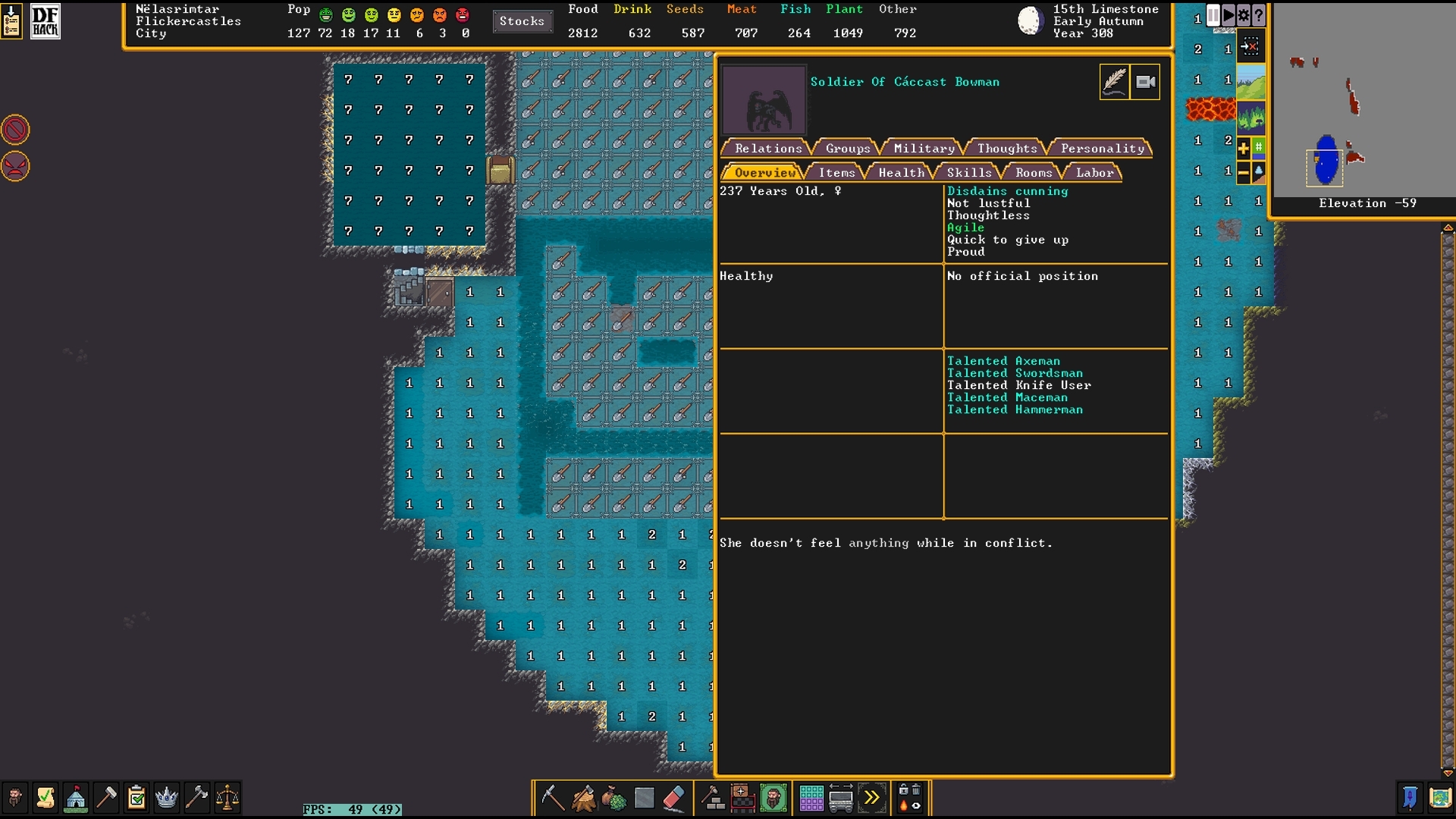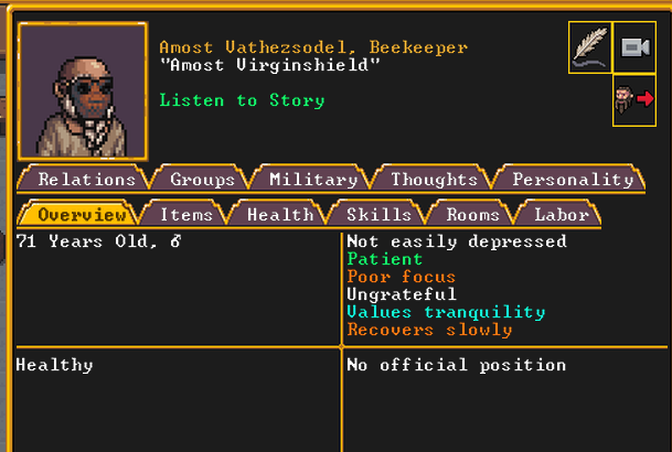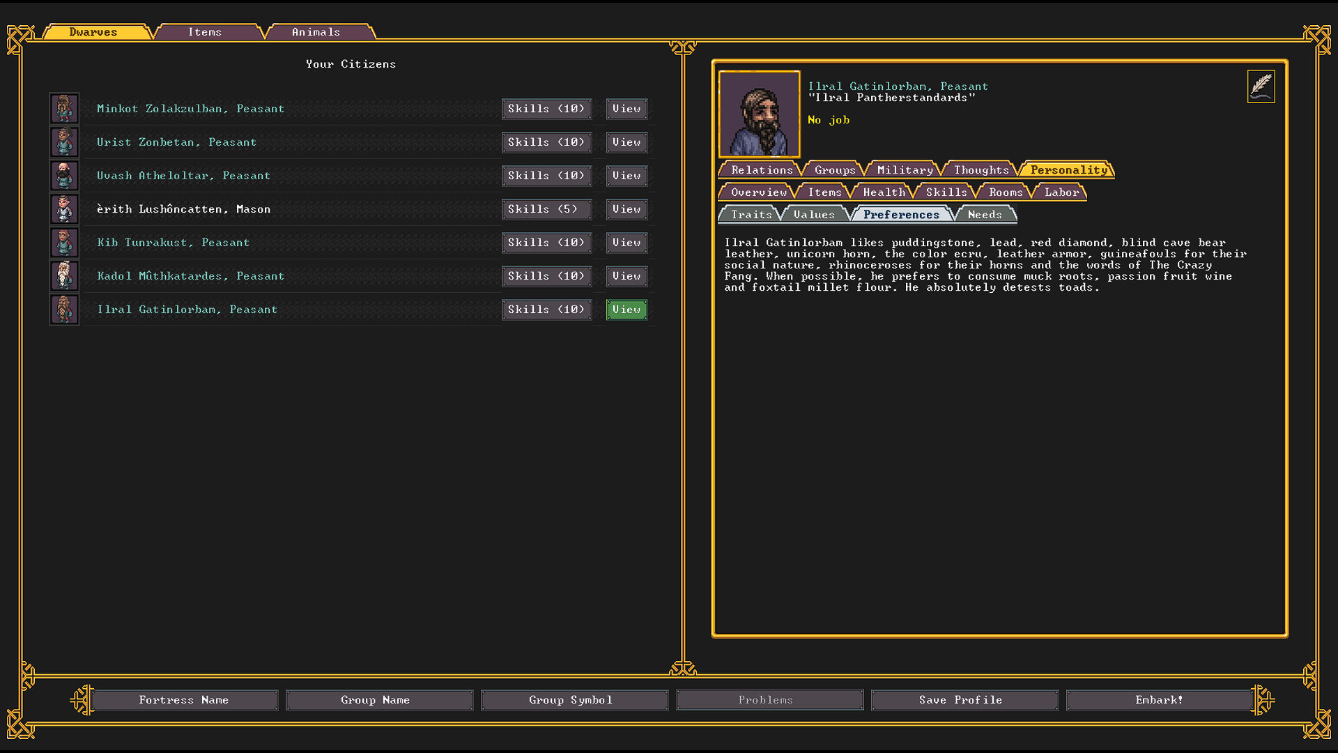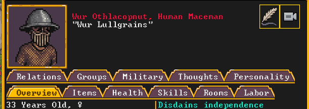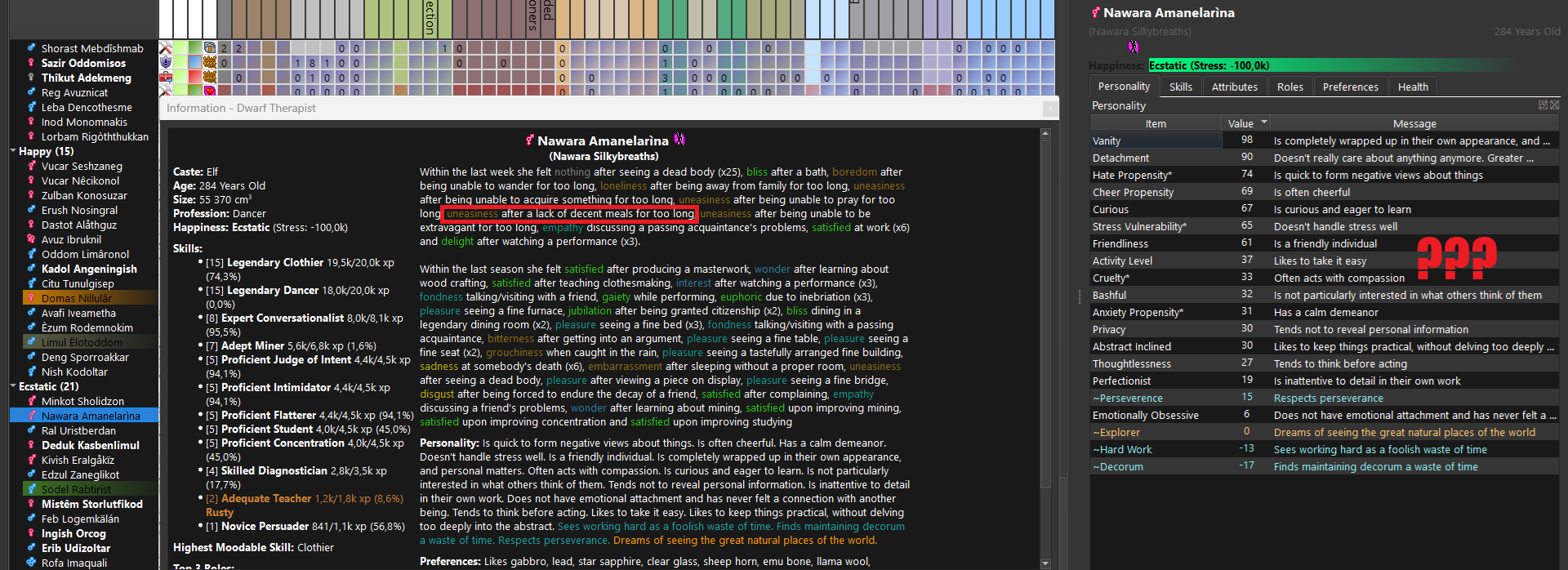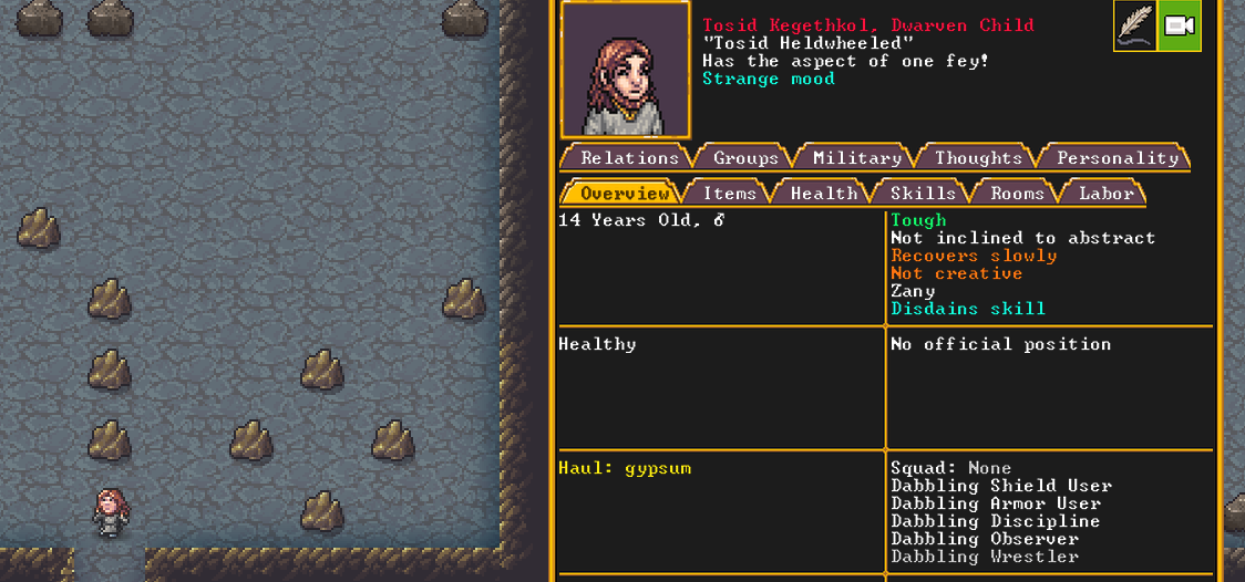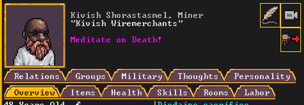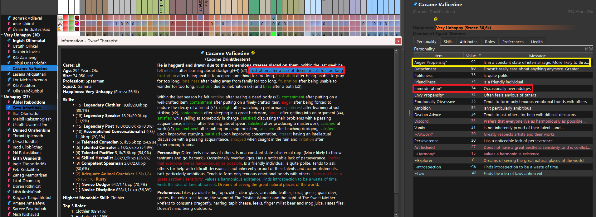 Почти у каждого дварфа даже у детей в описании личности стоит doesn't really care about anything anymore
