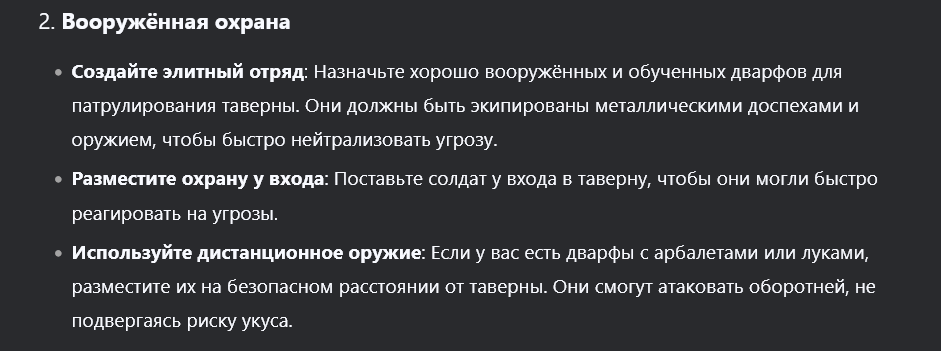 Поэтому нужны длинные коридоры до крепости и отдельная таверна для гостей. И достаточно поделить крепость на огораживаемые зоны, чтобы большая часть угроз исчезла.