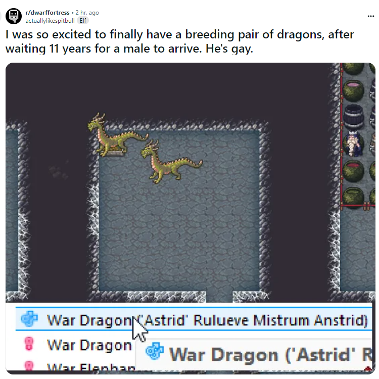 Большая часть херни в дварфах геймплейно просто буст настроения делает и больше нихуя. Целые производства, которые неэффективны и ненужны, если только не заносить их продукты ноблям допустим, которые их любят.