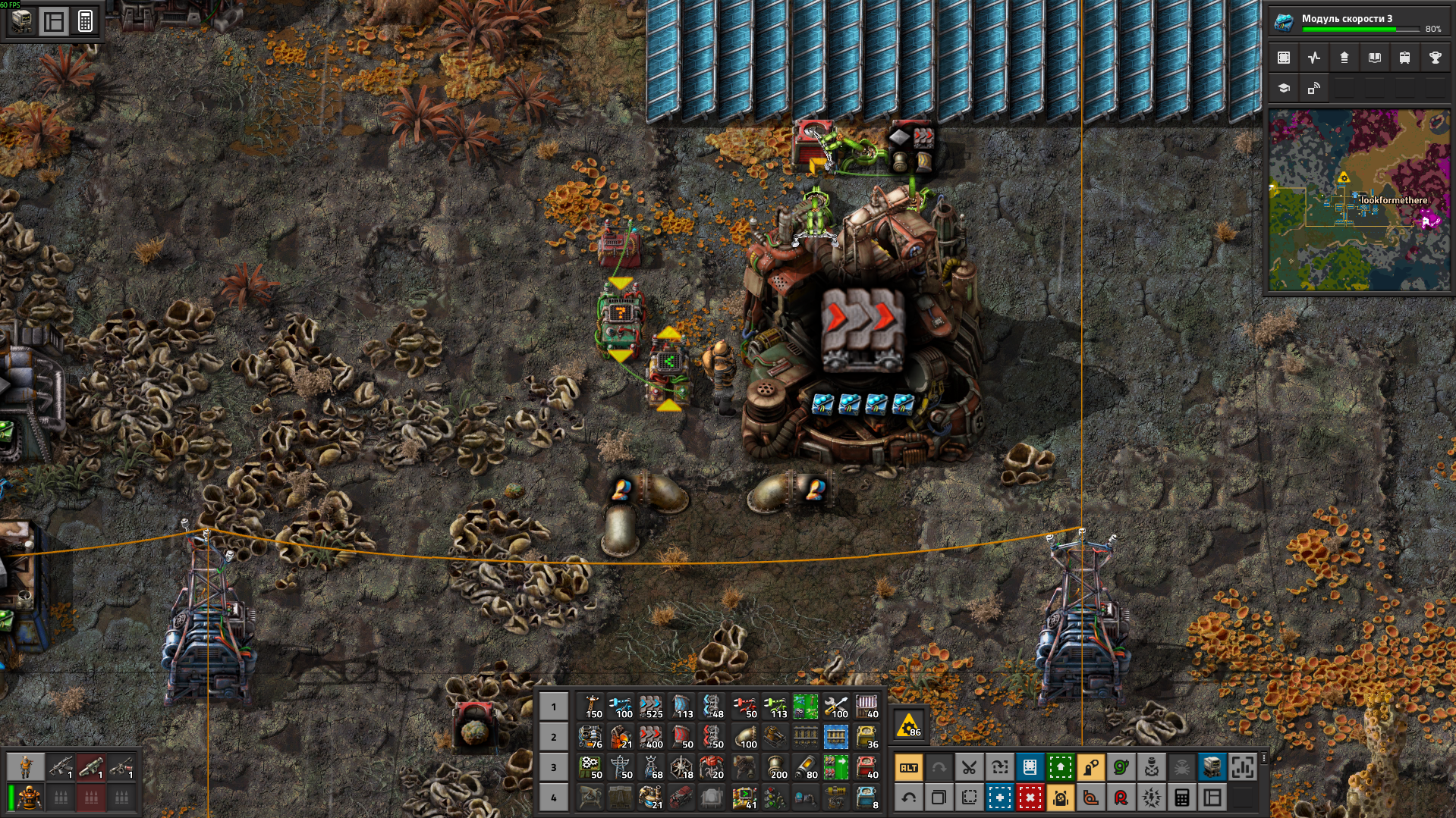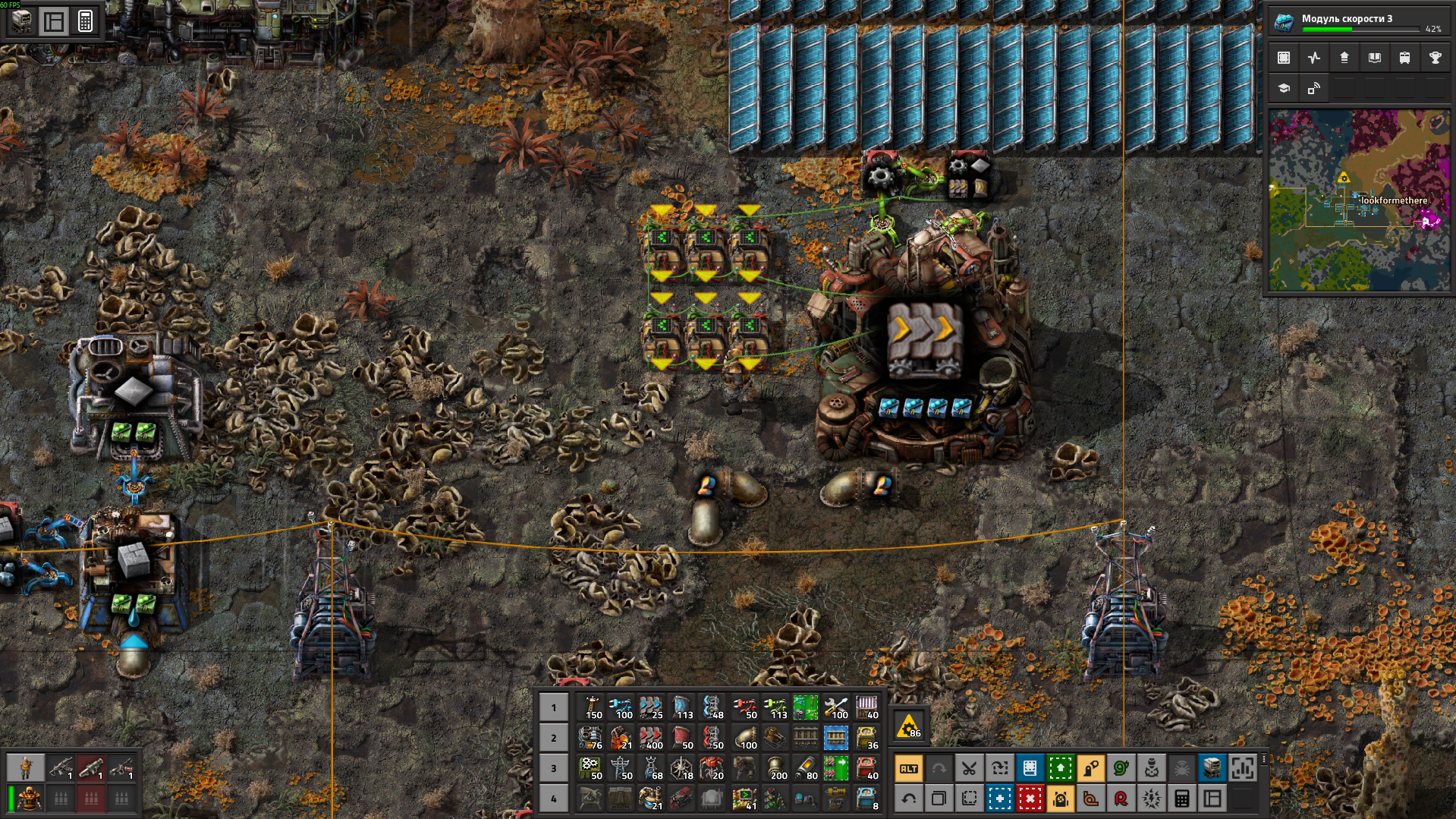 >>50276023 играю примерное по твоему принципу, (с учетом того что я ещё ничего не сжигаю, сливаю только грязный ил), база на синих+ банках работает, (поезда в основном пластины возят (скоро от этого откажусь, открыта плавка всех металлических деталей типо болтов, прутьев и тд из жидкого металла, буду трубами доставлять а возить поездами боракс и литейные подложки), дерево, мох куда нужно, некоторые растения, кокс банки на белтах, на дронах мини-молл работает, боеприпасы по периметру (арт.снаряды и патроны в турели), и редкие компоненты типо мк2 плат, всякие нейроматрицы и тд, т.е. те которые делаются в небольших количествах. База уже настолько плотная, что думаю надо сделать сбоку от неё жидкостную шину (как раз сейчас пластины не нужны будут во все места, мелочевка вся будет делаться из жижи). Но с жуками тяжеловато воюется (танк + дроны vs 70 эволюции)