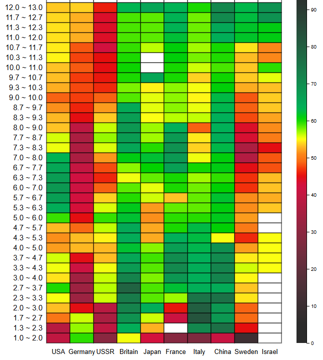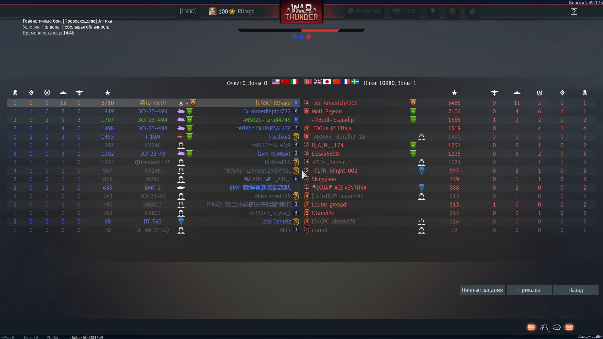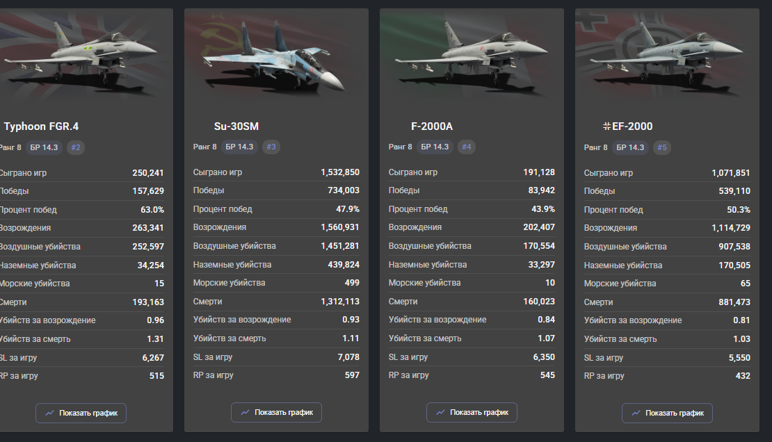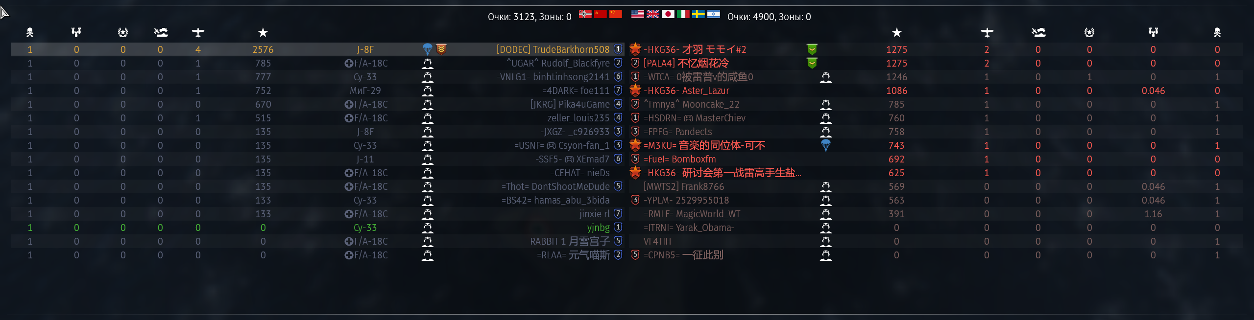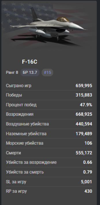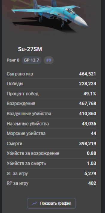 Сортировка по КД 13.7 самолетов. У китайцев такие же показатели как у Ф-15J(M) но в 5 раз(!!!) больше боев. И да учитывая что JM лучше 15С и на том же бре... И эти показатели лучше любого натолитака кроме французов. Но у тех - мики.