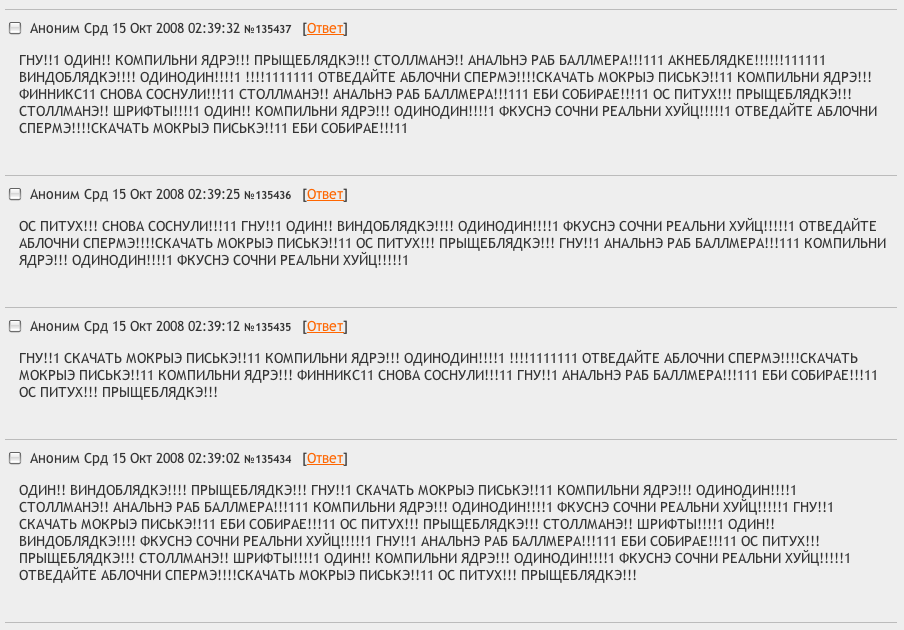 >но вместо "спасибо, принял к сведению" Да иди ты нахуй, забыл где находишься? Итт туалете только так.