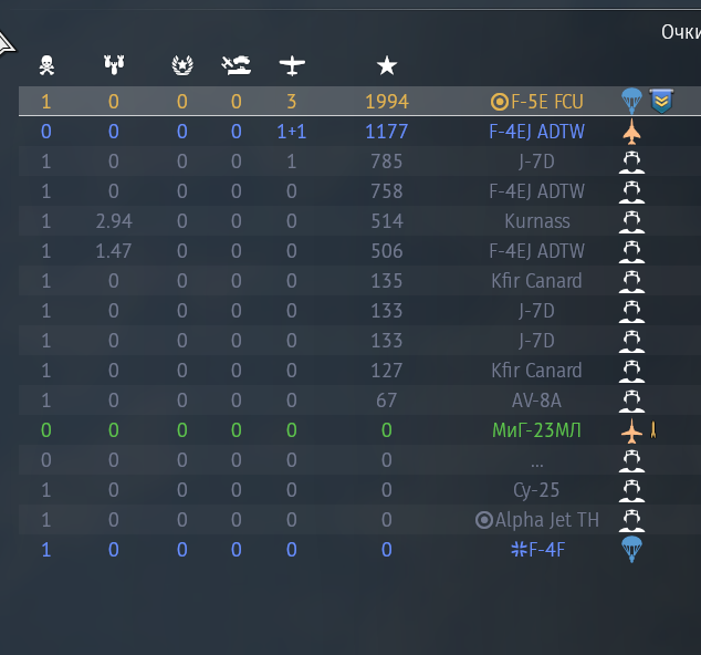 Короче, сыграл сегодня ~25 боëв на 9-12. Смог сделать 5 честных фрагов, 27эр пока не вкачал. Даже не понимаю, это я неправильно играю, или самолëт кал. На всех машинах прошлого ранга было 2+кд, правда давно. Из очевидного у него такой же никчëмный радар, как у 23мла, в остальном вроде как хороший самолëт, но играть хотя бы на среднем уровне не получается.
