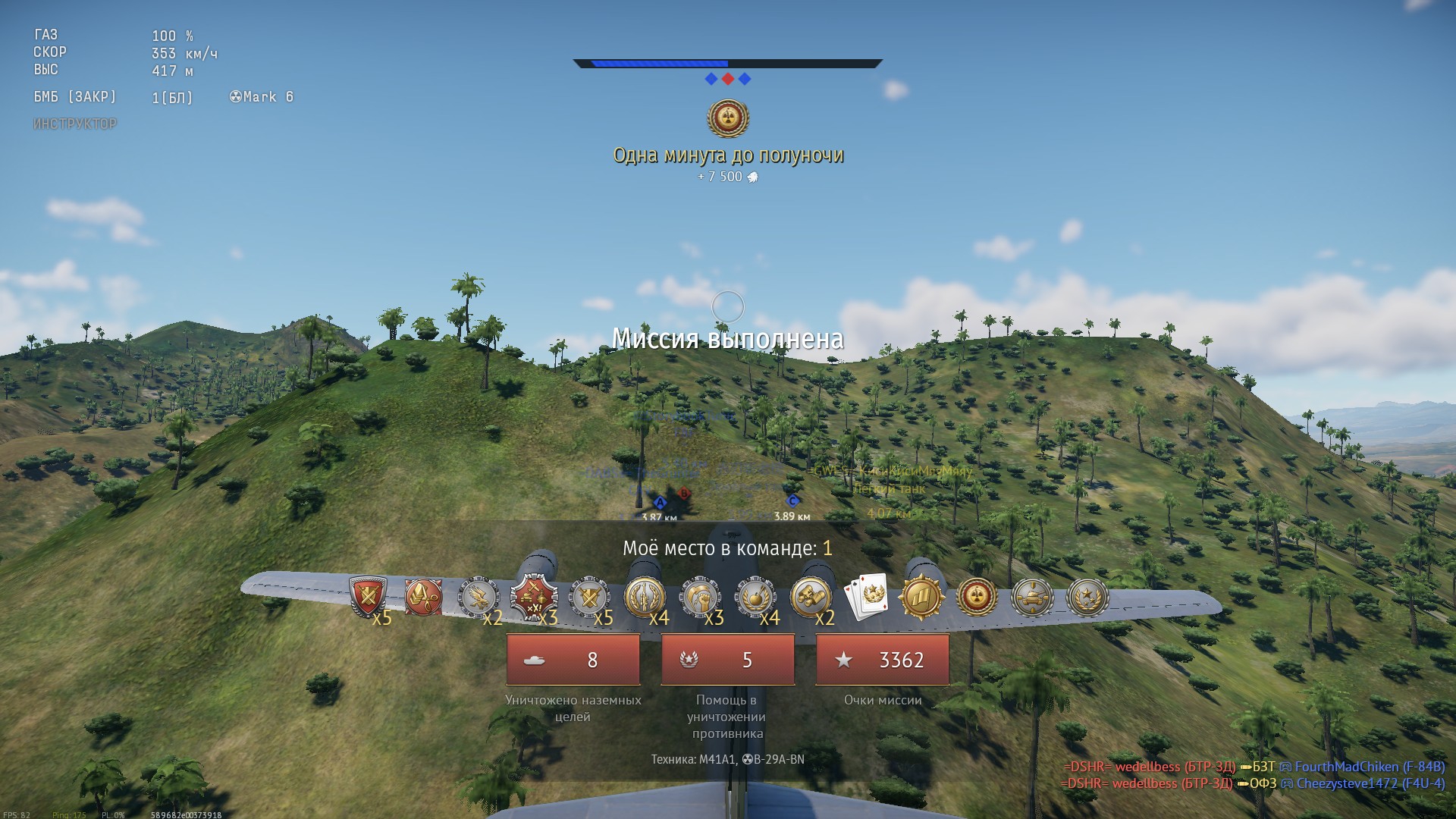 >>50338772 >А у тебя хоть один самолет топ тира на аккаунте имеется? У меня есть все самолеты топ тира на аккаунте, кроме еврейских и итальянских модификаций. >Расскажи мне, как ты на Рафале/Еврофайтере/Су30см летаешь у земли и нагибаешь? Блять, легко, даже радар не нужен, летишь чутка влево на высоте круиз контроля 100-1000 метров, тут глубоко похуй в антипод можно уйти сразу + малый форсаж, увидел трассер от летчика, кинул снизу вверх ракету = 90% это фраг, почему? Потому что охуенная настройка отражения и наведения от улиток.