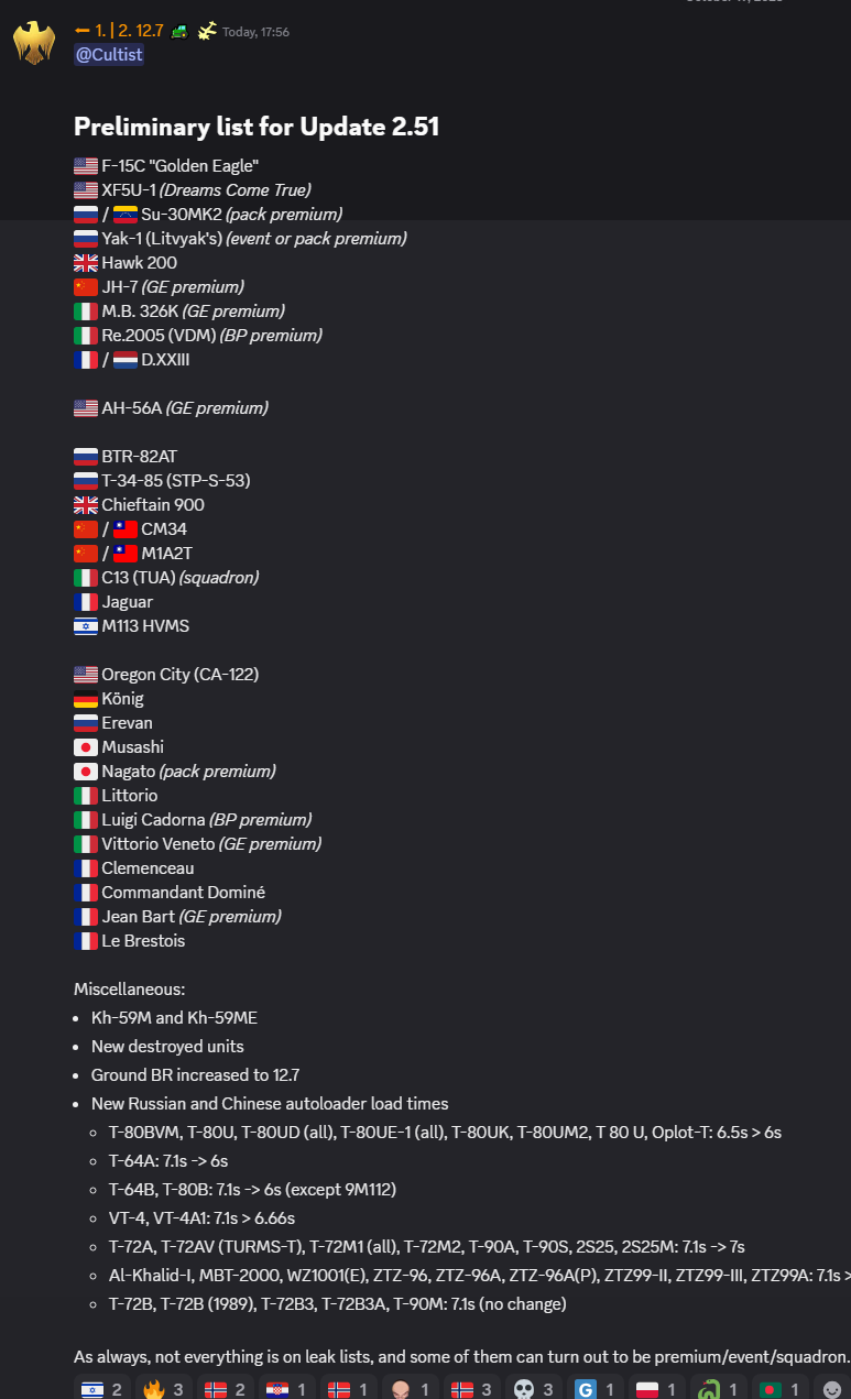 >>50337978 А почему британского прем хорнета не рассматриваешь? Много ракет, в целом норм самолет для 12.7. А по поводу бритах - у них еще есть лучший после финского топ хорнет за счет количества средств противодействия, есть торнадо f3 который является лучшим 12.0 самолетом в принципе. Грипен есть с более подходящими для него ракетками чем аим-120 (лучше доворачивают и попадают с ближних дистанций)