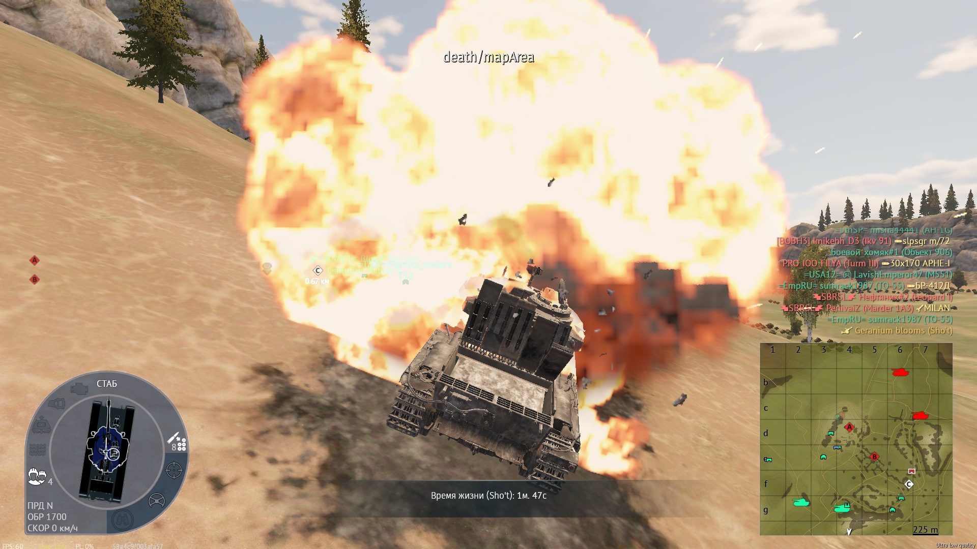>>50300485 (OP) Как же они меня заебали крутить эти фугасы. То арта ударит за домом в 20м от меня и это убивает так как 1 осколок прилетел в краешек танка. То вот это с 4.5кг тротила делает пук попав за 5 метров в открытый танк.