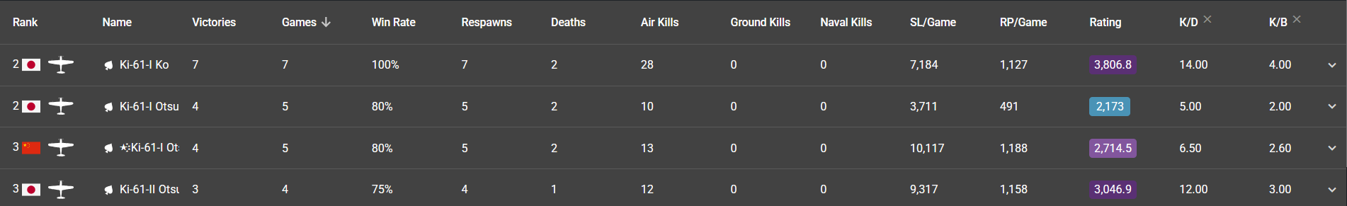 >>50344104 Эта хуйня затерпит в вираже только от бипланов, спитухов, ки-43 и зеро (+ есть редкие хуйни типа bv155, которые, скорее всего, смогут перекрутить ки-61). А так у японцев до 5.0 сверхсильные поршни в условиях АРБ, после этого - просто сильные. А все мустанги, кроме 51C и 51H - это литературно говнолёты, которые нихуя не могут сделать с японцами, только убегать. И даже на 51C нужно дохуя времени въебать на япа, если он не у земли и видит тебя. Ну или в лобовых пытаться зарандомить (но бак на зерохах выгорает за секунды и самолёт не успевает продамажиться)