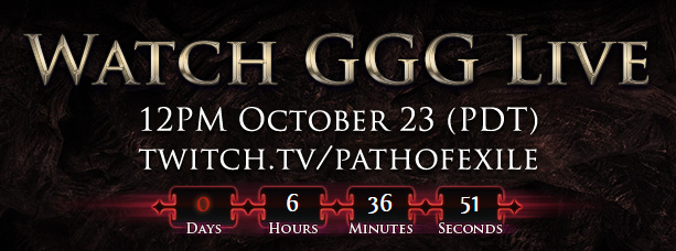 > Прямая трансляция GGG Live начнётся 23 октября в 22:00 (MSK) на twitch.tv/pathofexile!