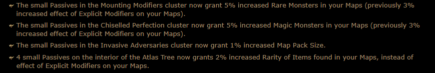 Нерфы мапинга очень грустные, еще раз понерфили кванту и паксайз на т17 и украли почти весь инкриз эффект мап модов это буквально в 1.5 раза меньше лута + не будет мерков это в 1.5 раза меньше куренси и другого лута немного меньше Ну и полностью удалили ботлед экзайлов, абис хорды, надутую грушу, и альву 🫡