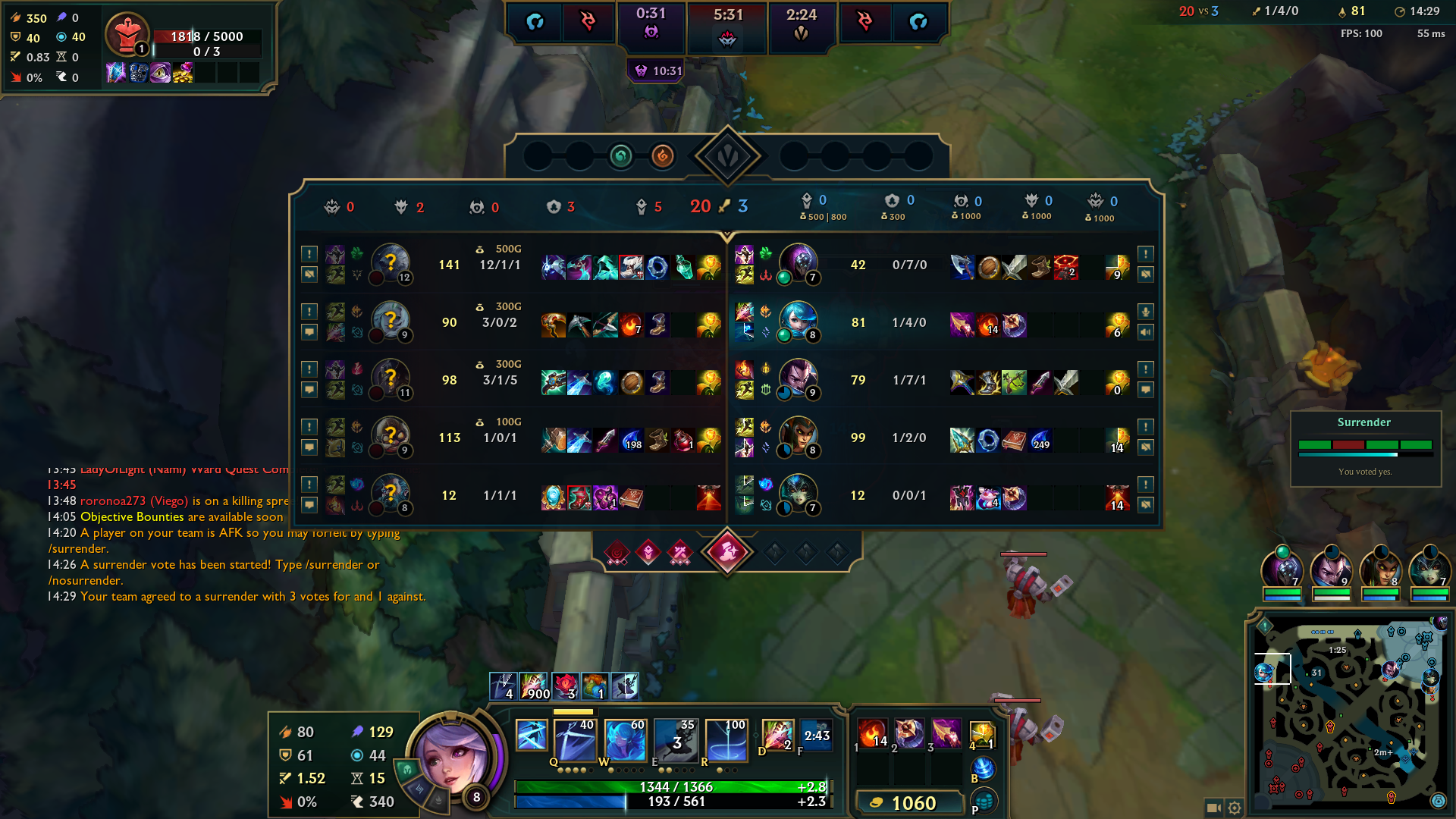 зачем запускать ранкед если не хочешь выигрывать, не хочешь камбекаться, не хочешь отходить когда Квинн противника пролетела через все возможные варды, если поднимаешь ручки вверх и жмешь сурренд хотя сдох лишь три раза и есть шансы на камбек
