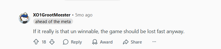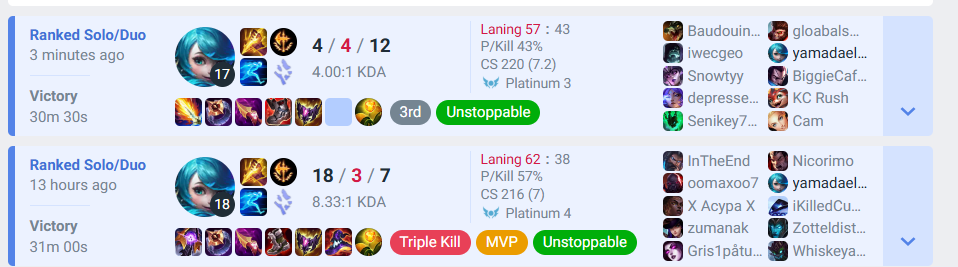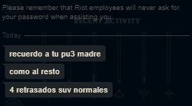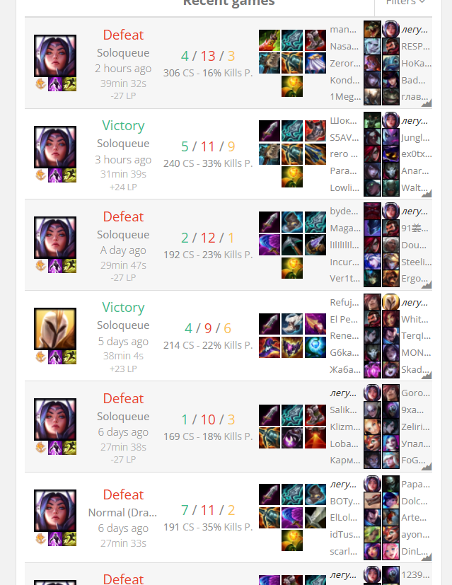 Две недели был оффлайн, а потом появился на одну игру в ранкеде, чтобы сделать 0/1 и уйти афк. Неделю спустя ни одной игры больше не сыграл. И вот такие СТРАННЫЕ игроки появляются каждый раз, когда у меня серия побед и/или винрейт в последних играх около 70%. В это время ритопидор в твиттере пишет как они заботятся о competitive integrity