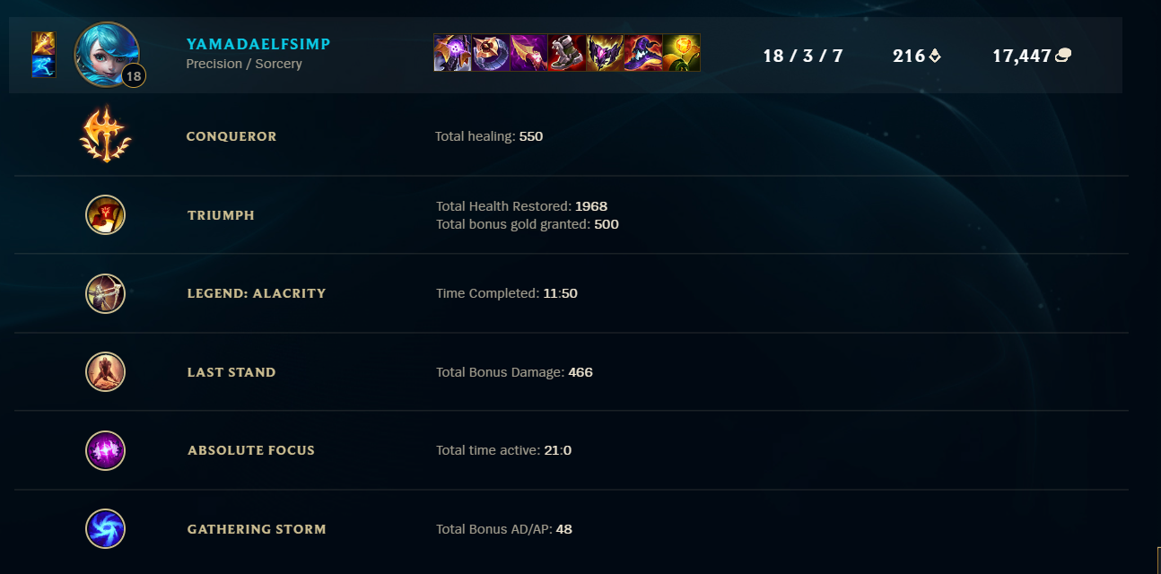>Ему больше подходят руны на короткие размены Он быстро настакивает конк из-за ку и е, и может долго сидеть на таргете чтобы настаканный реализовать.