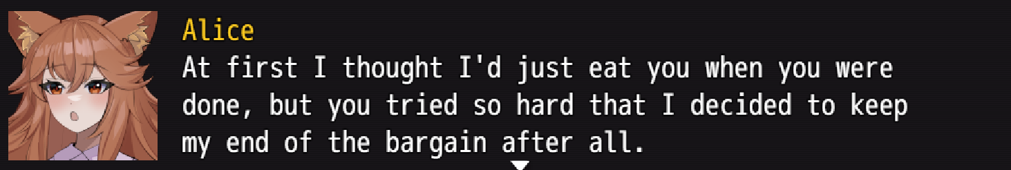 >только не знаю как, новеллку на койкацу чтоль запилить? А в чём конкретно идея? Понятное дело, что рпг в ренпай хрен впихнёшь и наоборот рпгмейкер слишком большой для простой новеллы, которую бы было комфортней делать на ренпае.