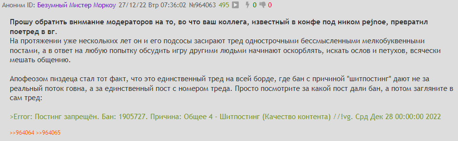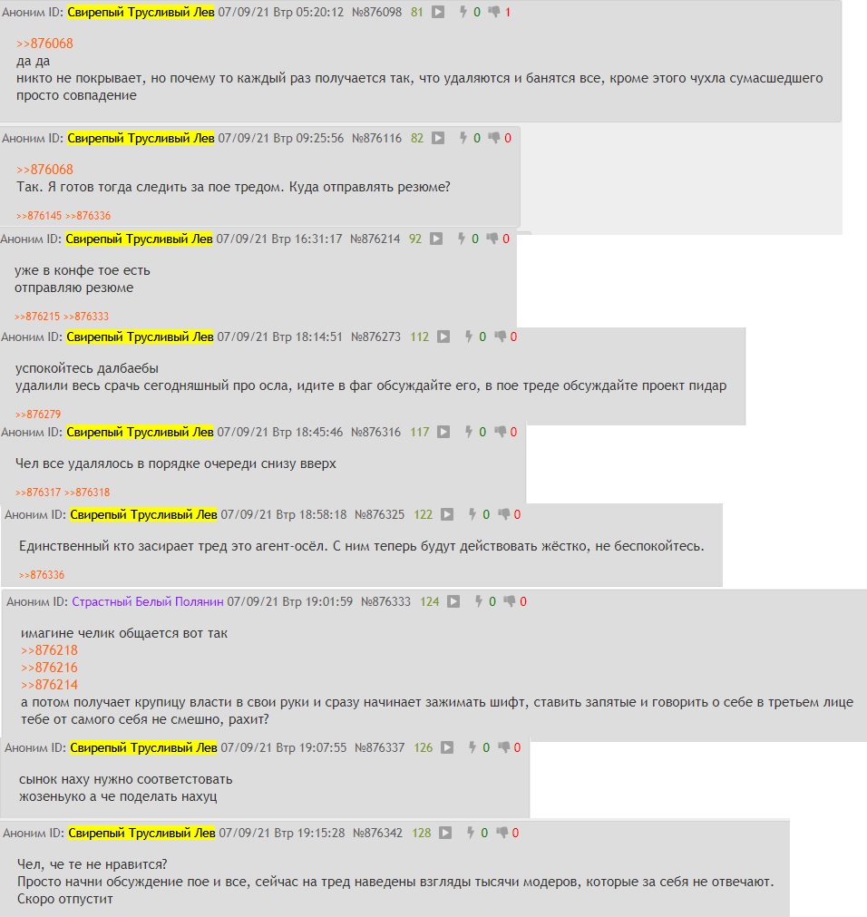 самое смешное что большая часть ослиных отправлений думать это даже не осел и не подражатели а просто местные шизики имеющие схожие с ослиной взгляды на то как надо организовывать общение (ну тоесть что надо просто забанить всех чьи посты лично тебе не нравятся во тогда заебись будет)