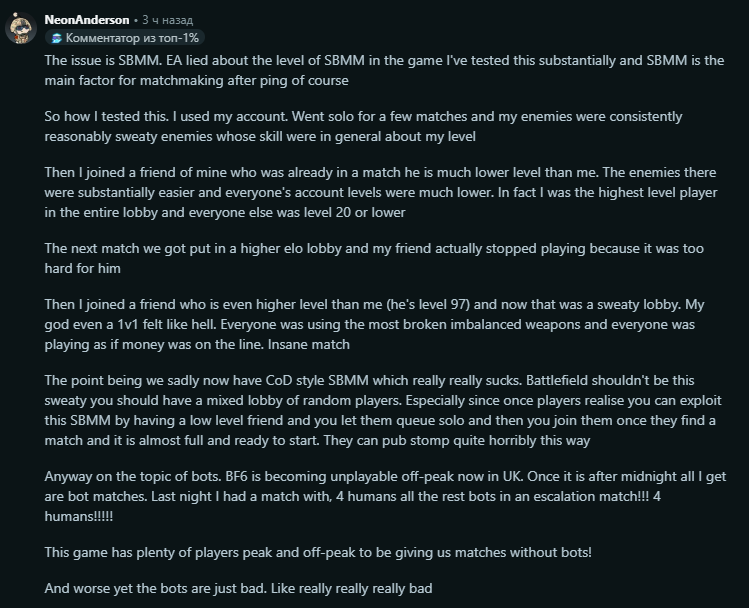 >Additionally, Sirland explained that “new players” will be stuck in matches early n with “onboarding bots”, but these shouldn’t exist after a few matches. The Battlefield 6 lead claimed that players “need to stick it out” with the bots Забавно.