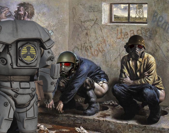 Вот там братство так братство! Это не те пососы что в первой, второй, третьей, вегасе или непонятные в 4ке. Вот тут они реальная сила, после захвата бункера Ноль, сломали бы лицо и НКР и тем более петухам в юбочках при случае.