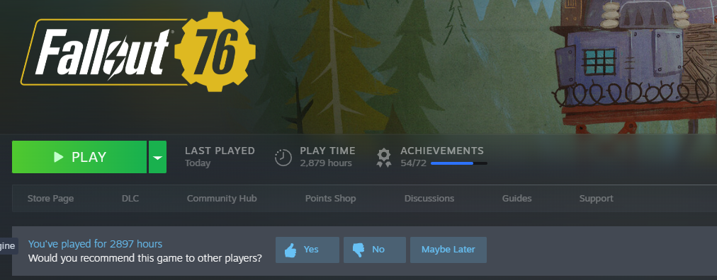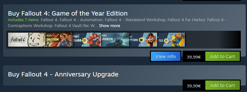 >>50282448 > Всем привет! Чёто задумал вкатиться в ф76 на скидках. Добро пожаловать >Подскажите, пожалуйста, есть ли стОящие платные длц? А то я видел платное длц с рыбалкой - насколько я понял оно только одну механику просто этой рыбалки и добавляет. По ощущения нахуй не нужно (?) Все длц на странице с игрой это либо стартерпакии с донат валютой либо сезонное длц с косметикой и какойнибудь рарной фигней уровня скинчика уникального или эмоции. Весь контент игры и обновы бесплатны, все фичи доступны всем игрокам, за исключением фич за подписку.