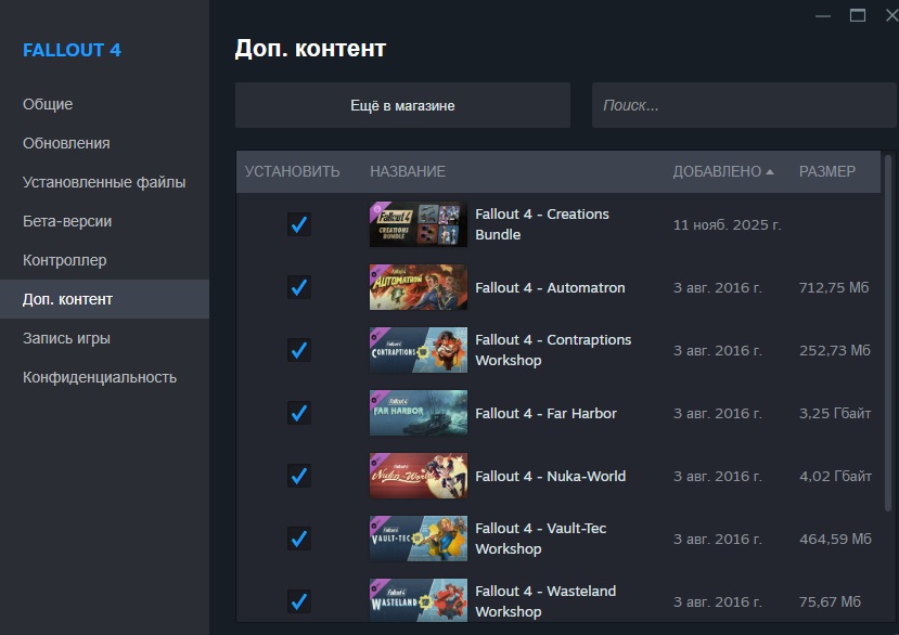 Обрез караванщика, рычажка и одностволка на 20 и обрез, помпа и отбойник из сталкера на 12. Плюс несколько действительно уникальных оружек, а не по-сути скайримское зачарование стандартного оружия. И это не считая разных патронов (которые нахуй не нужны на самом деле). Зато в ф4 взрывные патроны накладываются зачарованием, дооо.