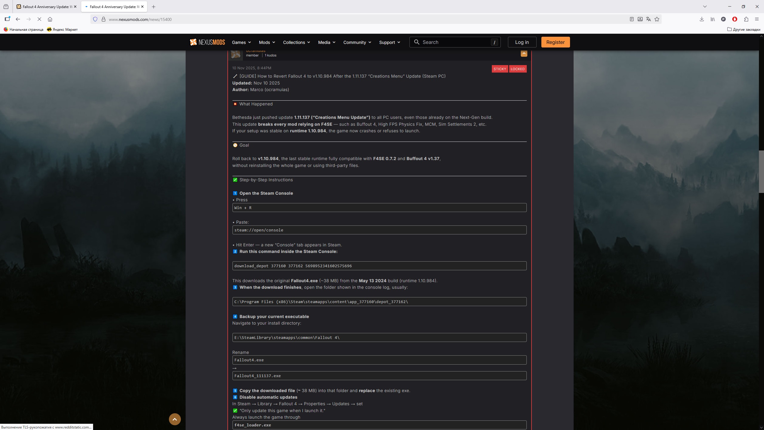 Каждый раз при выходе нового поломанного калового переиздания ломается уже ломаное а Разрабы каловых переизданий даже не пытаются фиксить проблемы и сделать нормальную совместимость с, блядь, модами на одном и том же движке уже сколько лет привет скайримскому аекалыч а Слыш, жри очередные скинчики на пип-бой и "уникальные", "новые" пушки, которые на анимациях дефолтных ну и очередные скинчики на дефолт пушки